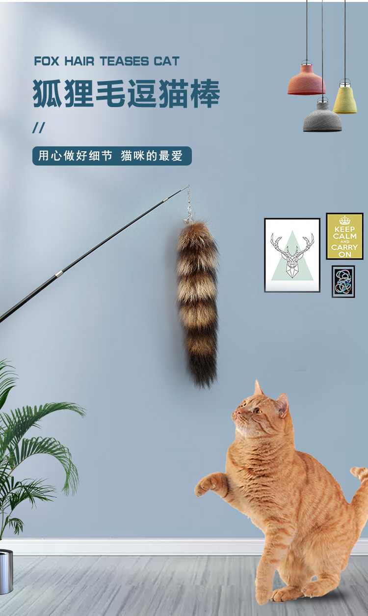 아마존 애완 동물 용품 고양이 장난감 여우 깃털 망원경 막대 고양이 장난감 어금니 물린 고양이 장난감 인터랙티브스토어 가기