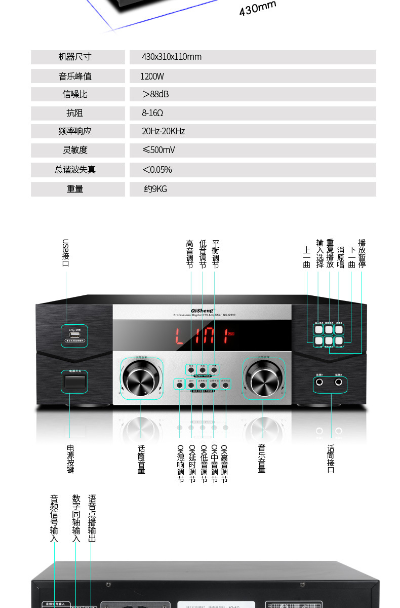 홀수 사운드 파워 앰프 홈 시어터 2.0 채널 AV 파워 앰프 디지털 동축 블루투스 무대 회의 KTV 오디오