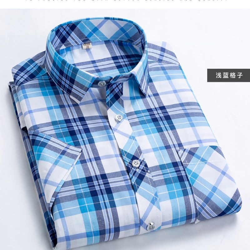대외 무역 남자의 여름 새로운 비즈니스 캐주얼 격자 무늬 셔츠 남자의 얇은 포켓 짧은 소매 셔츠 재고스토어 가기