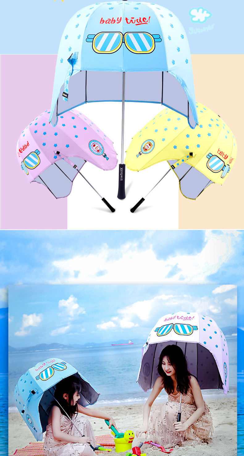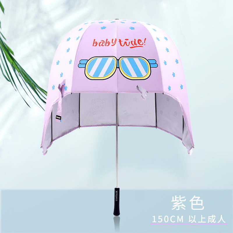 창의적인 만화 스타일의 귀여운 헬멧 우산, 어린이용 양산, 부모-자녀용 자외선 차단 긴 손잡이 모자