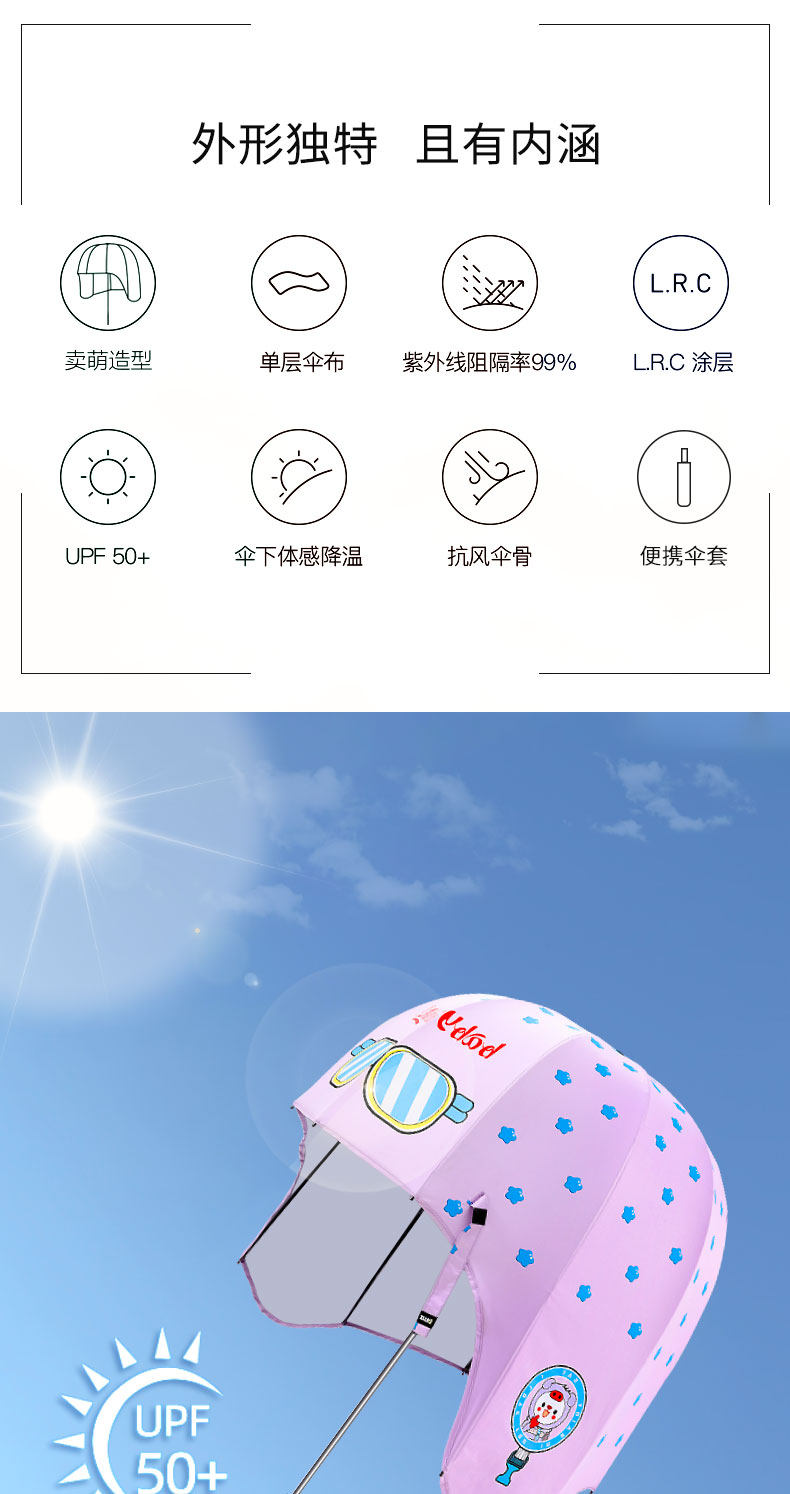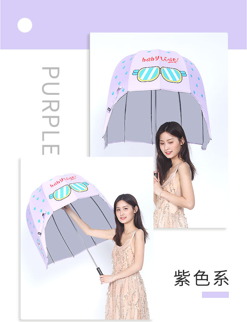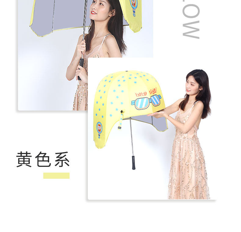 창의적인 만화 스타일의 귀여운 헬멧 우산, 어린이용 양산, 부모-자녀용 자외선 차단 긴 손잡이 모자스토어 가기