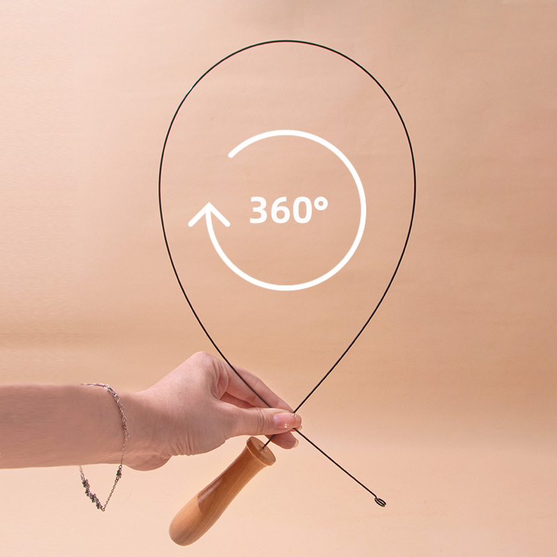 • 나무 손잡이가 달린 긴 강철 와이어 막대