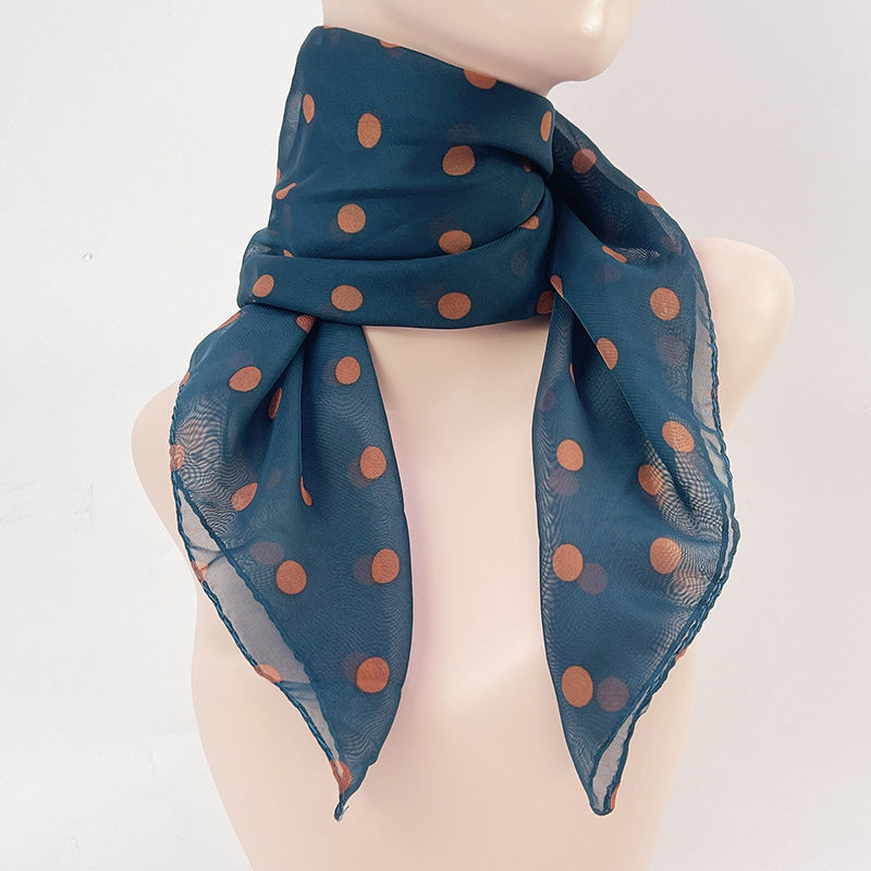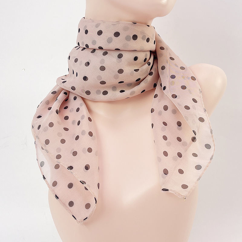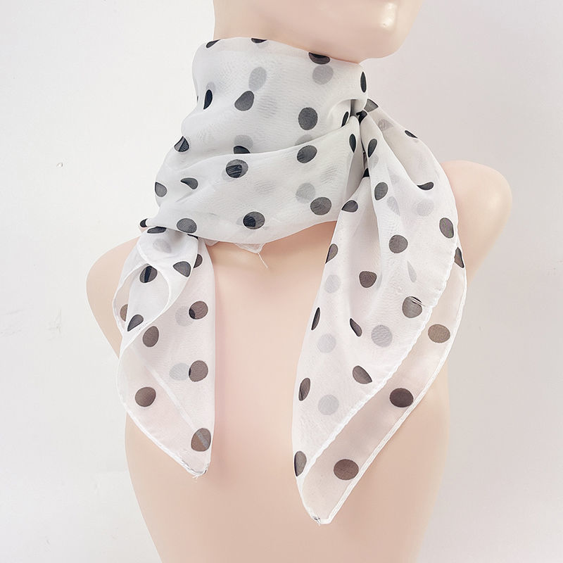 봄과 여름 얇은 새 쉬폰 스카프 여성용 폴카 도트 인쇄 작은 사각형 스카프 사각형 스카프 65CM
