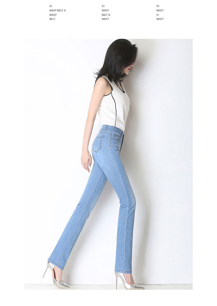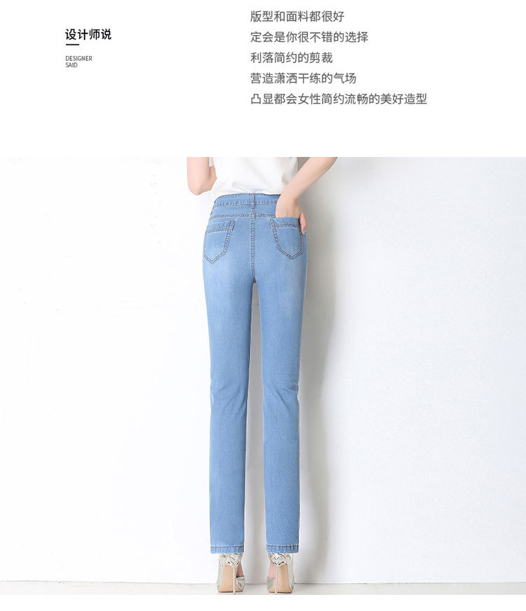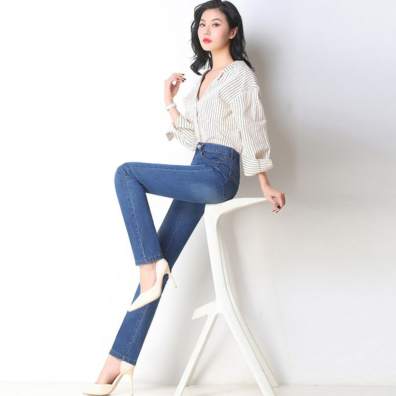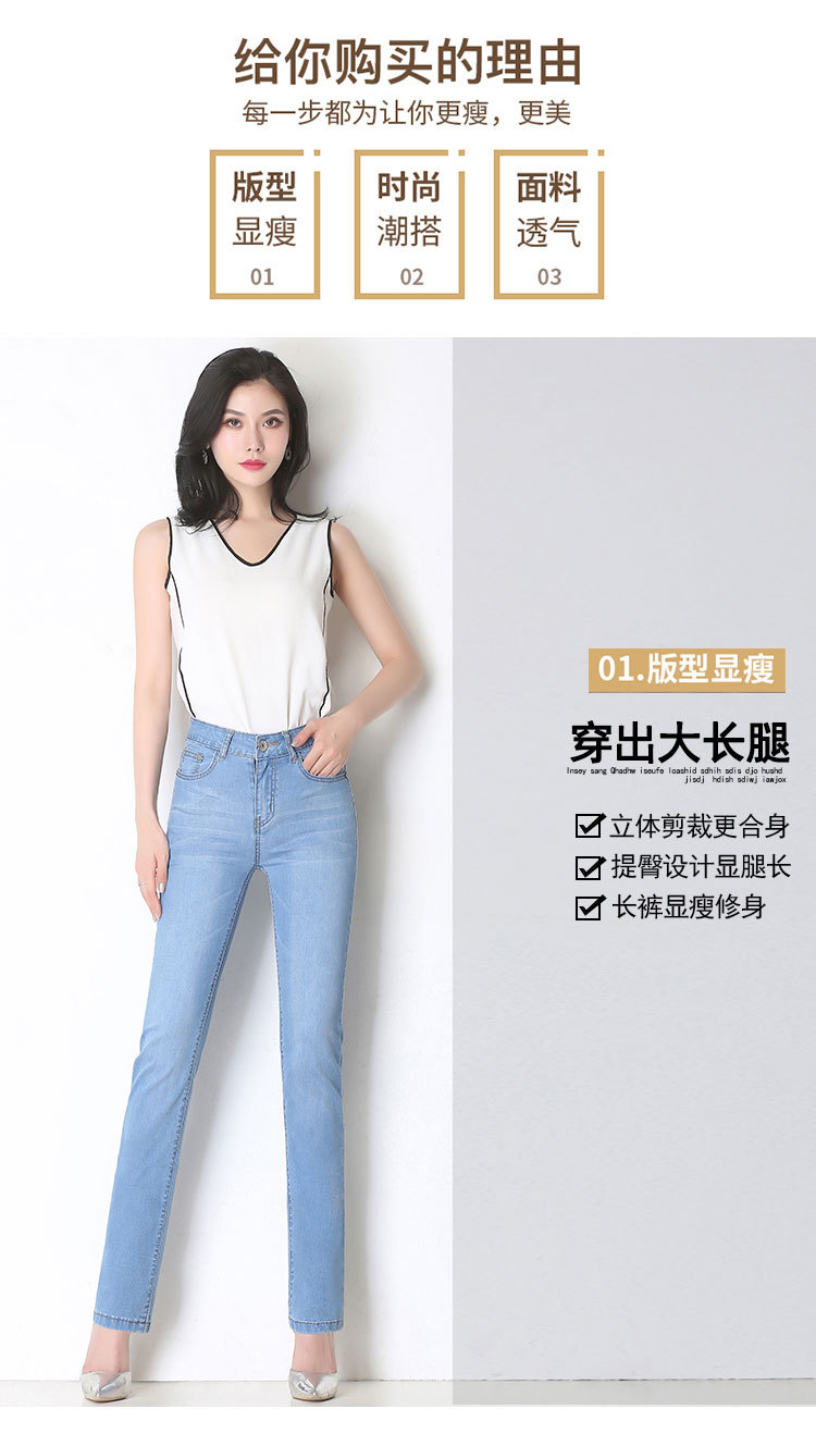 하이 웨이스트 진 여성용 느슨한 스트레이트 팬츠 봄과 가을 슬리밍 플러스 사이즈 스트레치 얇은 슬림핏 여성용 스트레이트 팬츠 4 계절