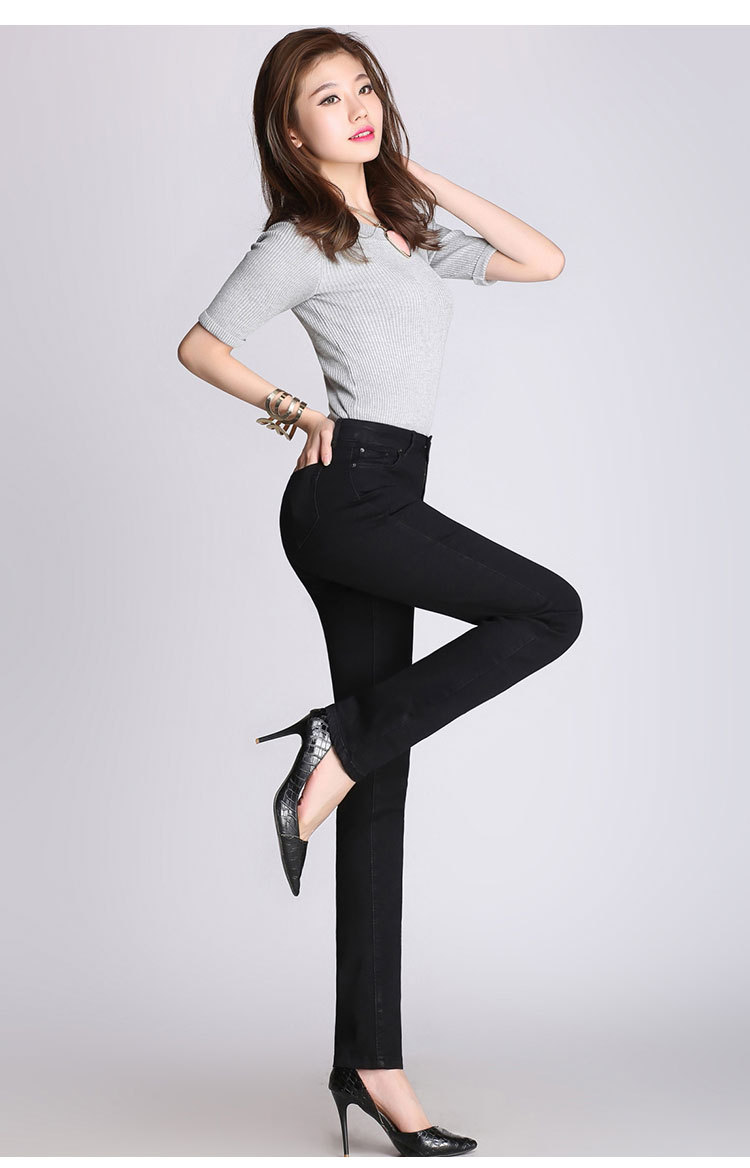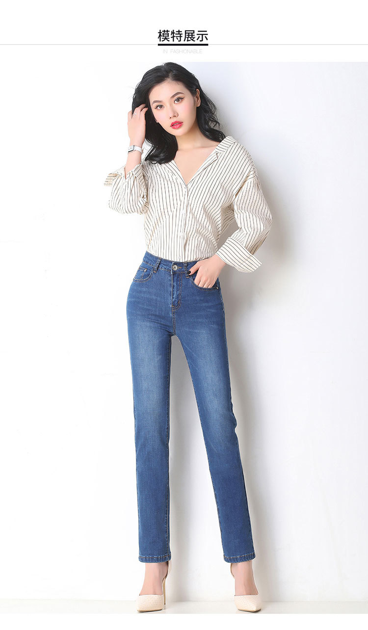 하이 웨이스트 진 여성용 느슨한 스트레이트 팬츠 봄과 가을 슬리밍 플러스 사이즈 스트레치 얇은 슬림핏 여성용 스트레이트 팬츠 4 계절스토어 가기