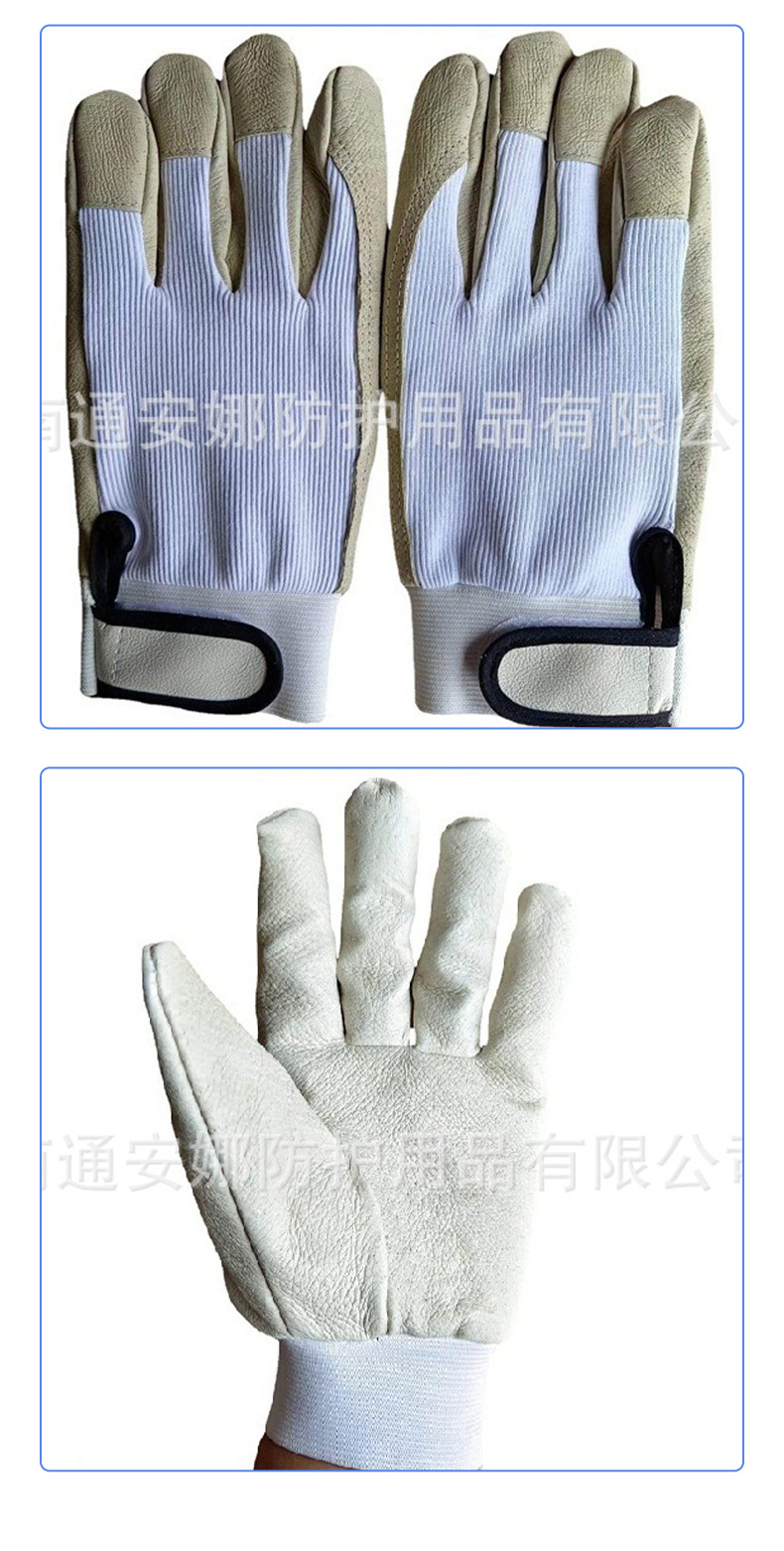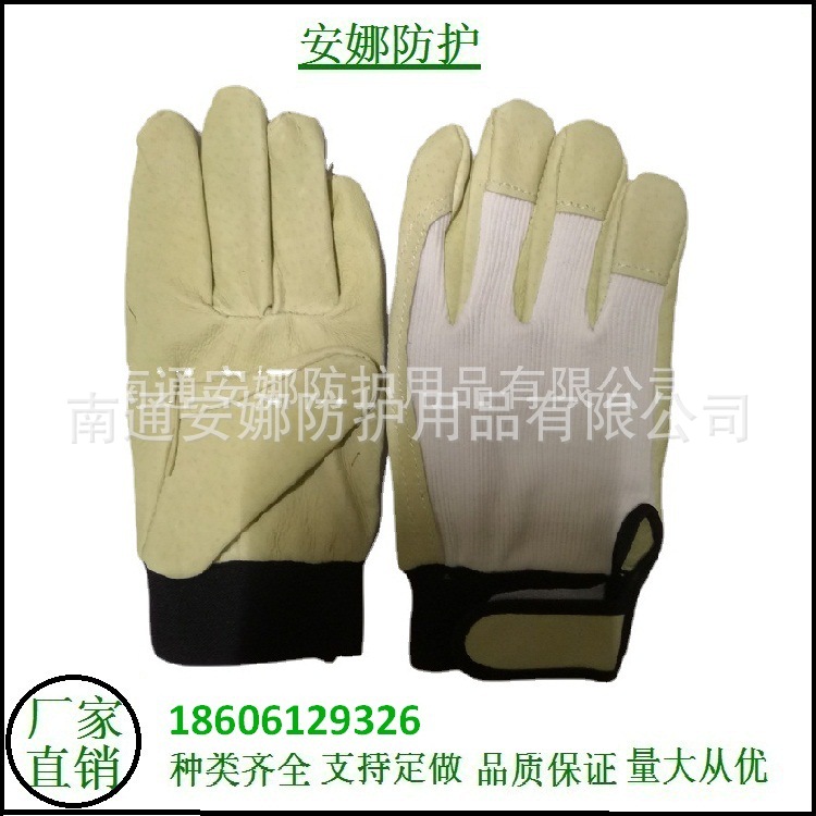 공장 직접 소프트 돼지 가죽 장갑 반 가죽 노동 보호 탄성 뒤 탄성 슬리브 후크 및 루프 내유성 내마모성 찌르기