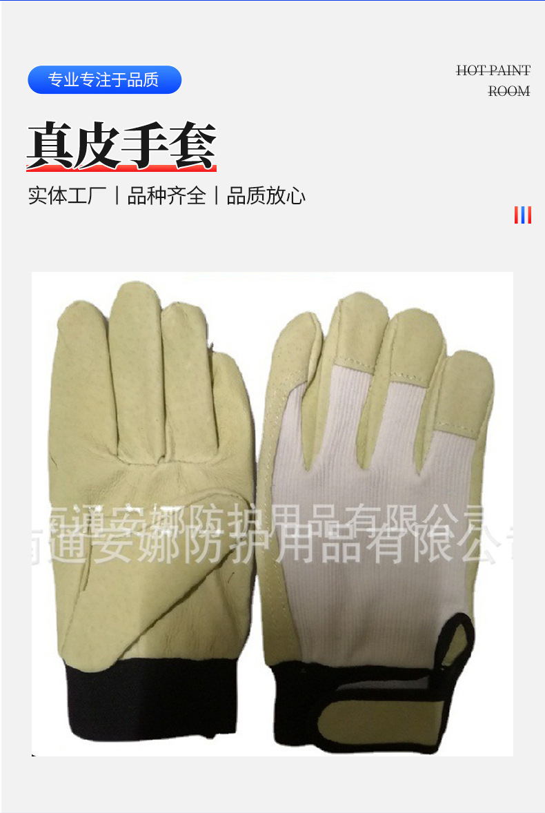 공장 직접 소프트 돼지 가죽 장갑 반 가죽 노동 보호 탄성 뒤 탄성 슬리브 후크 및 루프 내유성 내마모성 찌르기스토어 가기