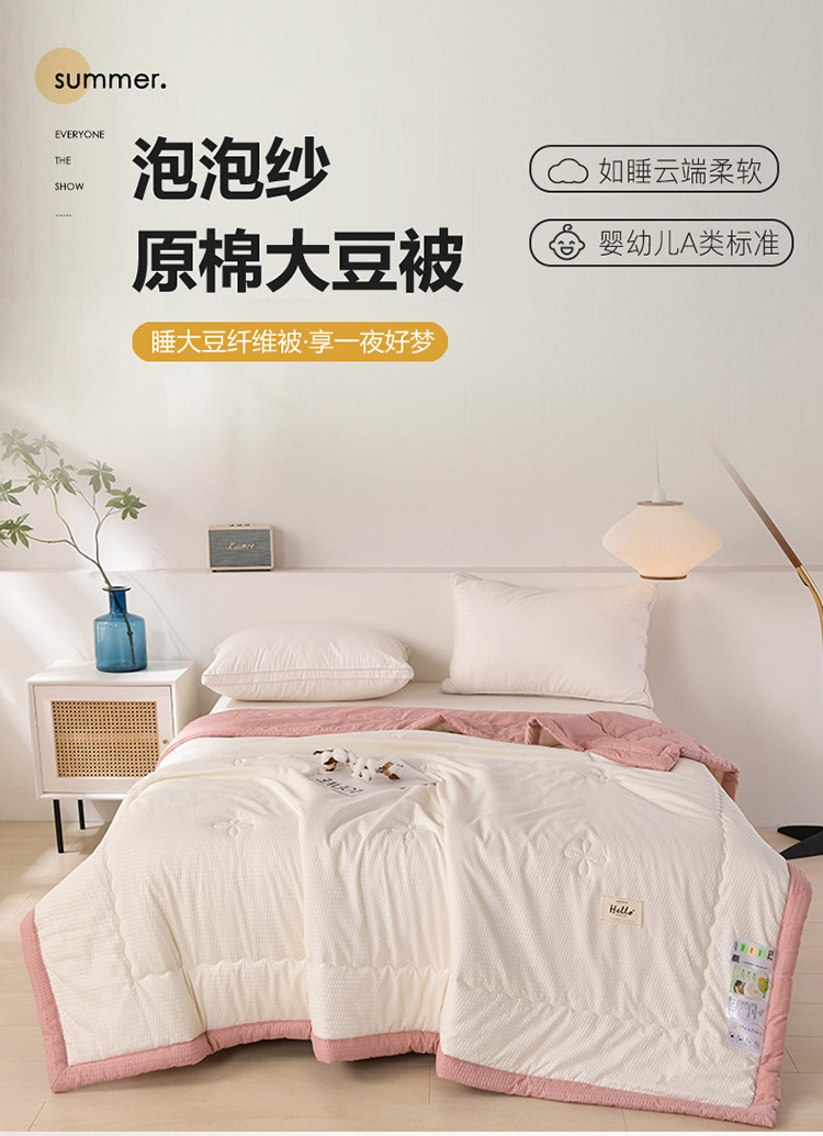 클래스 A 엄마와 유아 생 코튼 사우어 서커 미인쇄 시리즈 여름 쿨 퀼트 에어컨 퀼트 세척 가능한 피부 친화적 인 코튼 콩 이불 섬유