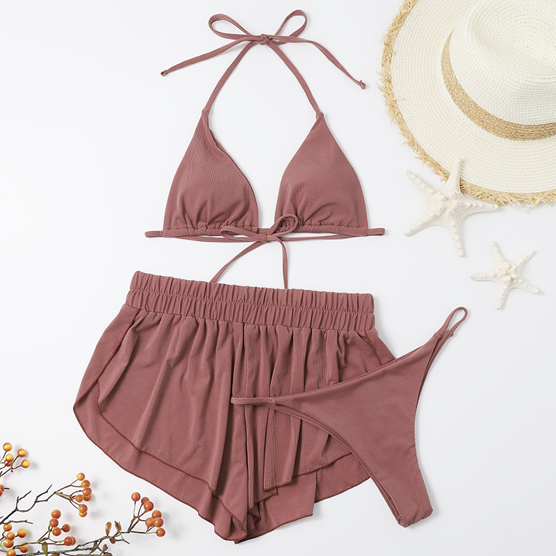 솔리드 컬러 스플릿 여성 수영복 3피스 수영복 가슴 패드 비키니 대외 무역 수영복