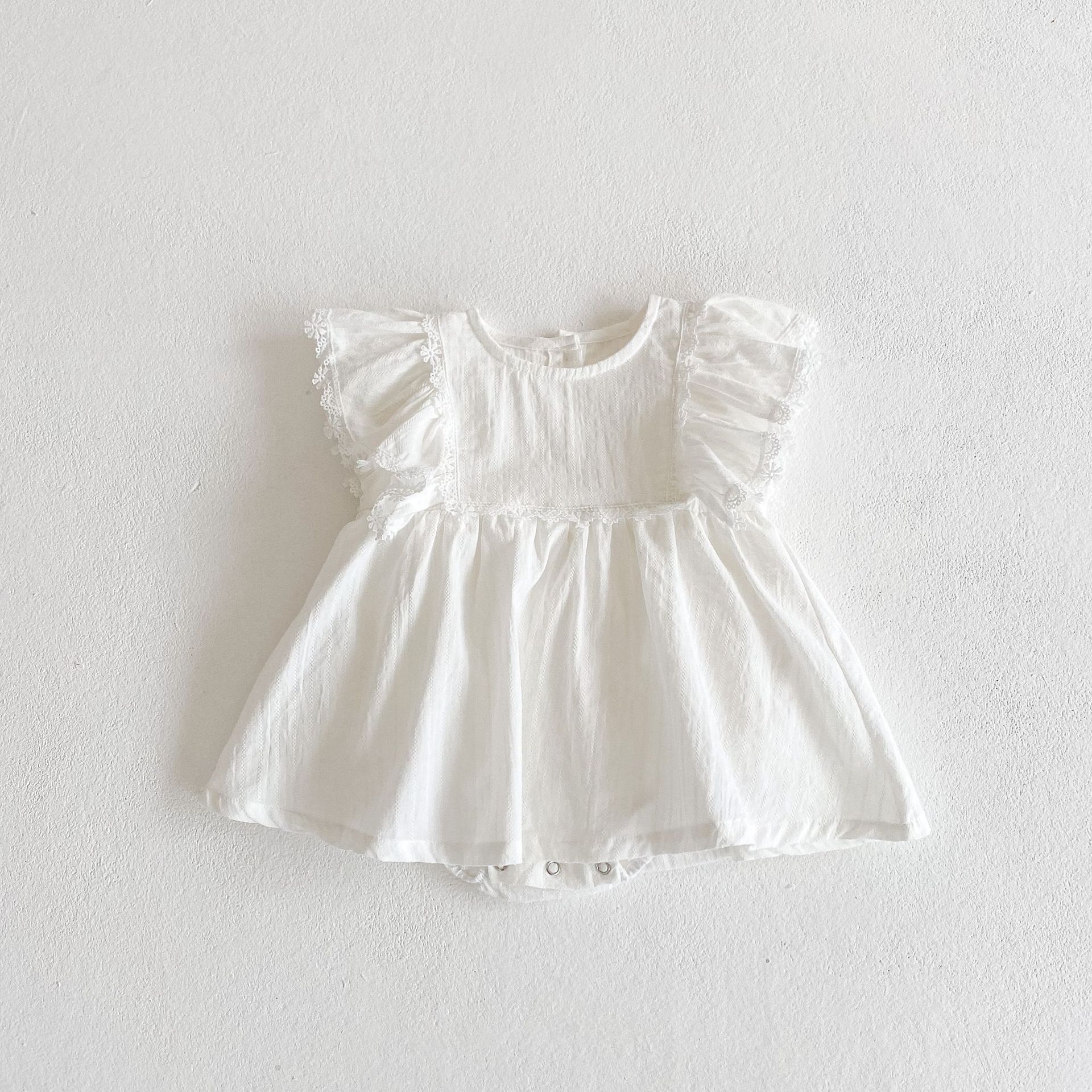 Ins 2025 여름 코튼 유아 아기 소녀 점프 슈트 자카드 레이스 플라잉 슬리브 스커트 장난 꾸러기