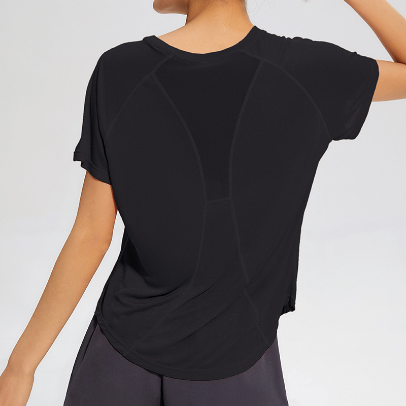 유럽과 미국 스포츠 반팔 여성용 요가 탑 체육관 러닝 트레이닝 느슨한 티셔츠 메쉬 얇은 피트니스 의류 여름용스토어 가기