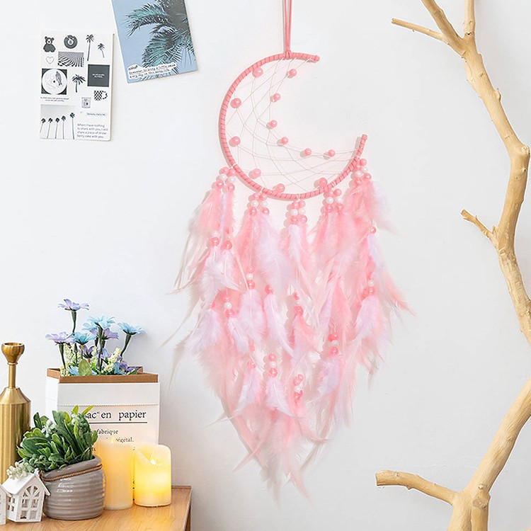 창조적 인 달 Dreamcatcher 핑크 시리즈 관광 명소 매달려 깃털 펜던트 자동차 장식 친구 선물스토어 가기