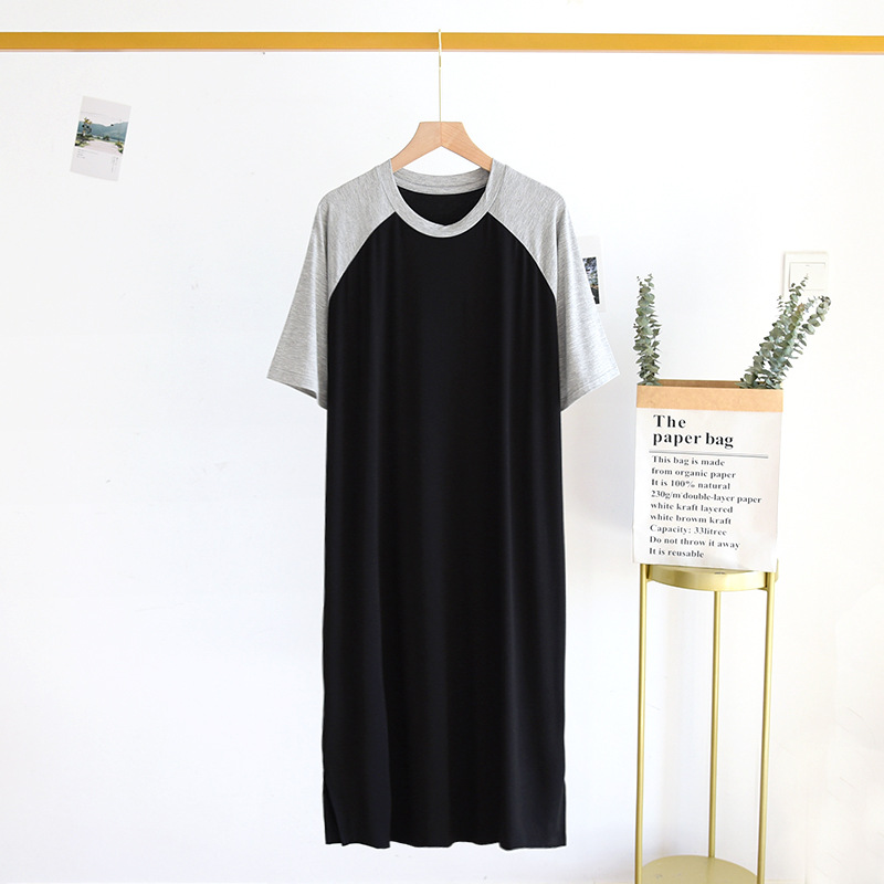 잠옷 남자의 여름 모달 남자의 여름 잠옷 원피스 아이스 실크 반팔 잠옷 플러스 사이즈 얇은 가정 의류스토어 가기