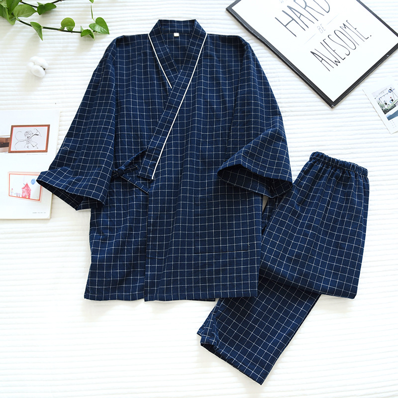 봄과 가을 얇은 남성과 여성의 세탁면 홈 잠옷 제조 업체를 세트 여름 새로운 면화 애호가 기모노스토어 가기