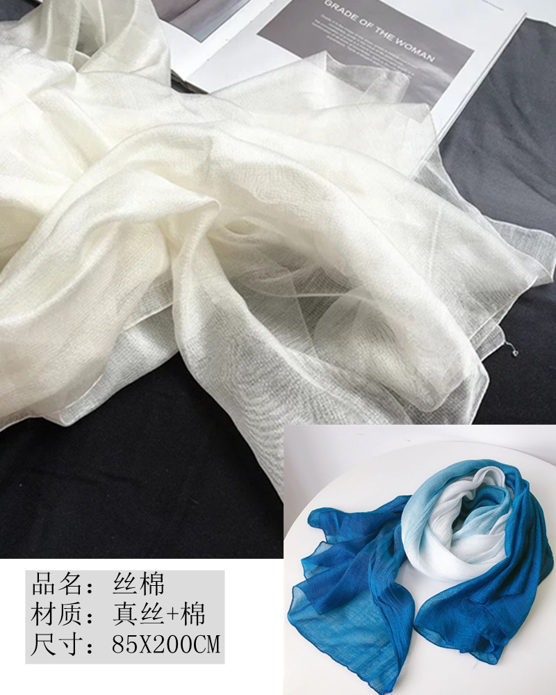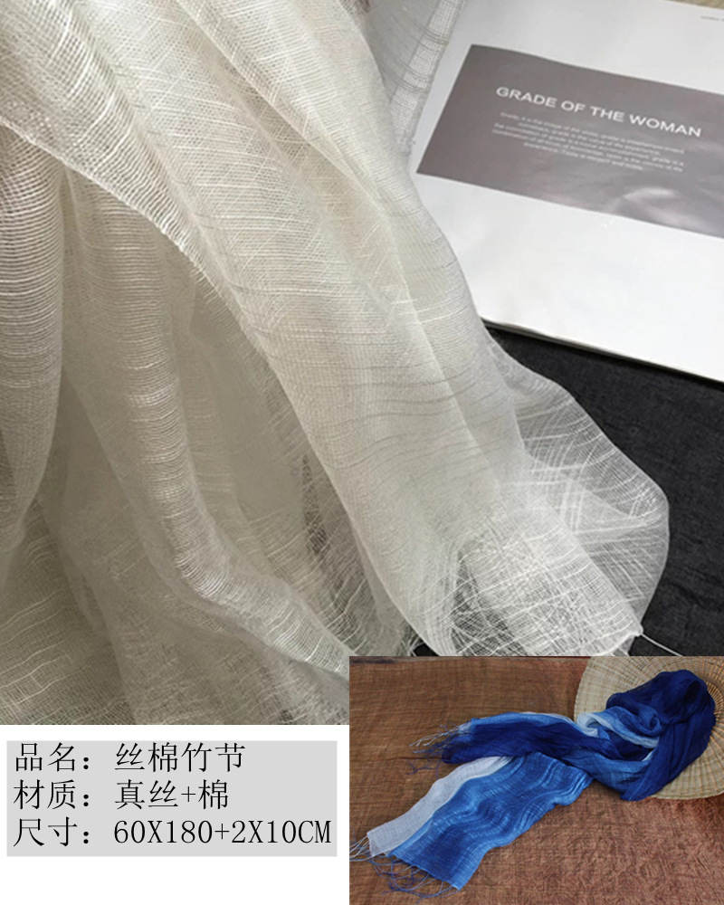 比例问题:因为真丝纱线比较细比较轻,重量不易计算,所以围巾中所占有的比例无法计算!