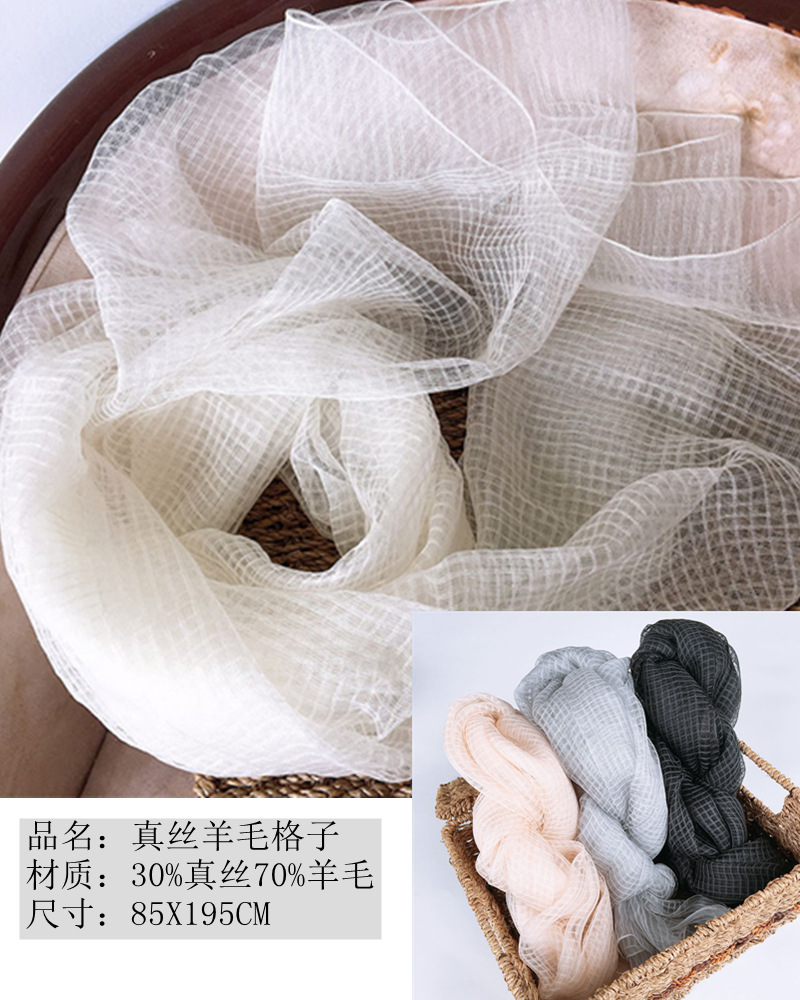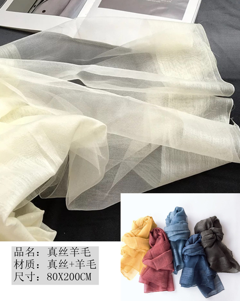 经纱真丝,纬纱羊毛,透明部分为纯真丝!