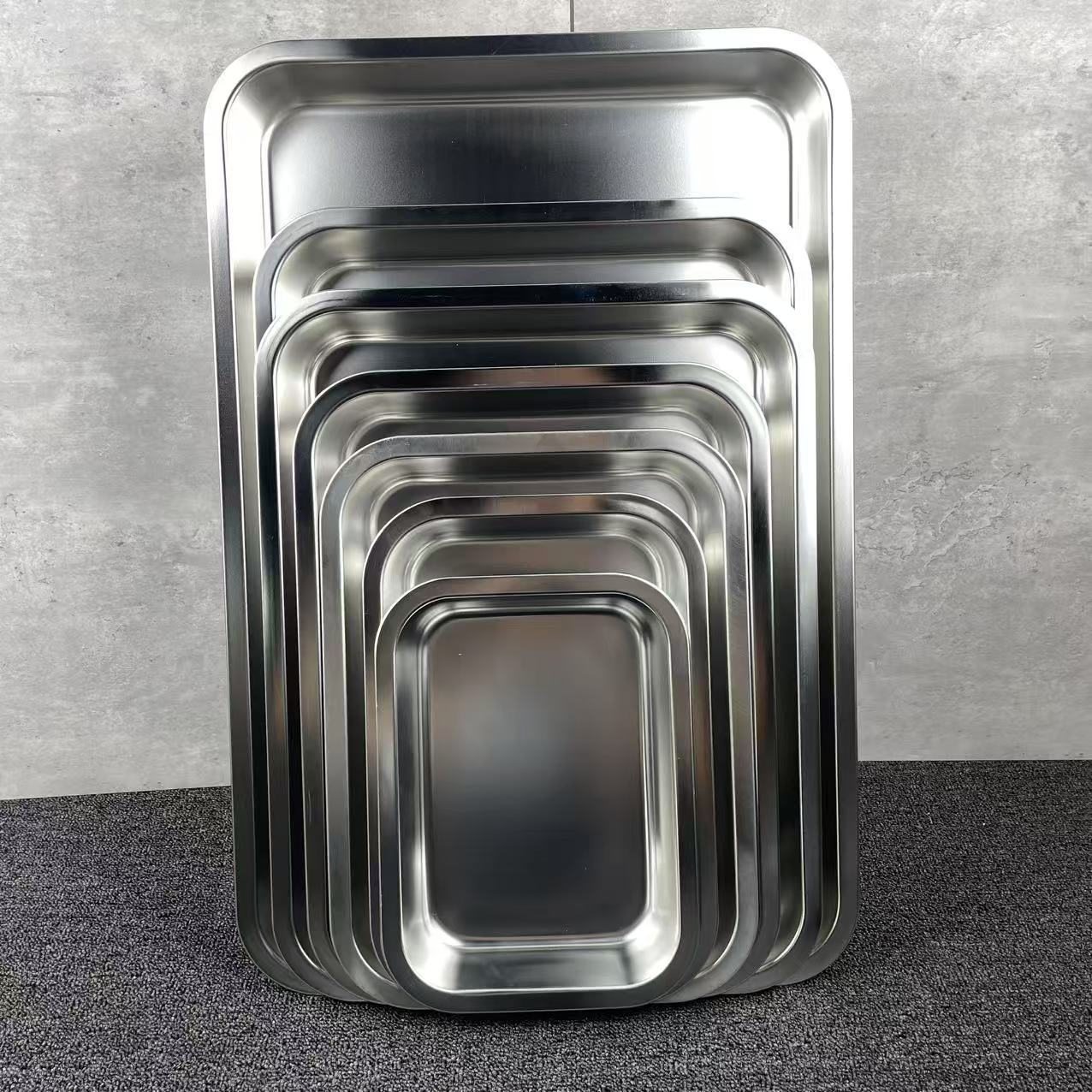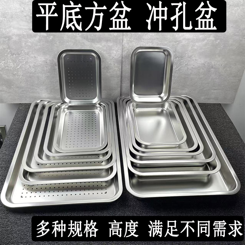 스테인리스 접시 직사각형 수납 그릇 뚜껑 포함 뷔페 그릇 음식 그릇 두꺼운 고양이 모래 깊은 접시 평평한 바닥 사각 접시스토어 가기
