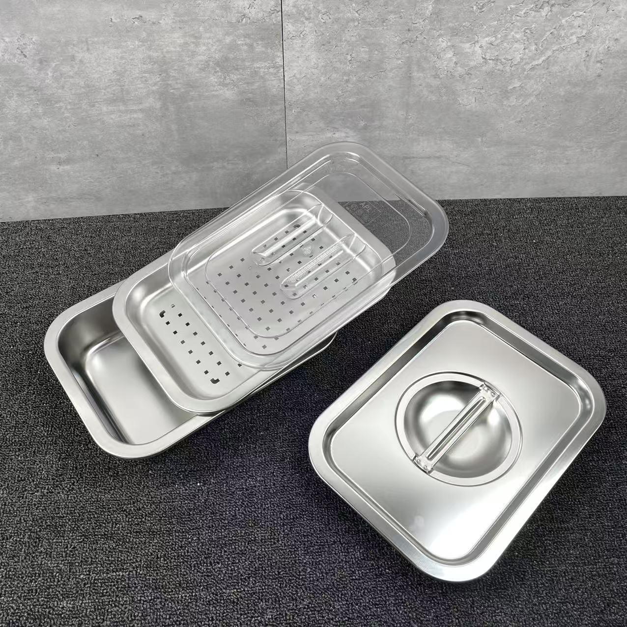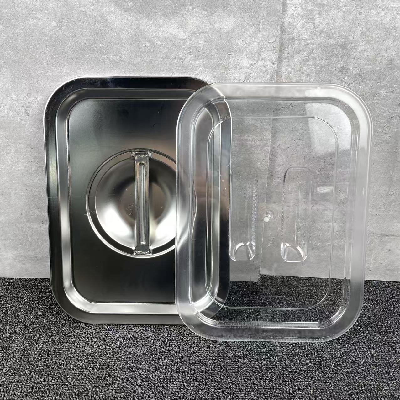 스테인리스 접시 직사각형 수납 그릇 뚜껑 포함 뷔페 그릇 음식 그릇 두꺼운 고양이 모래 깊은 접시 평평한 바닥 사각 접시