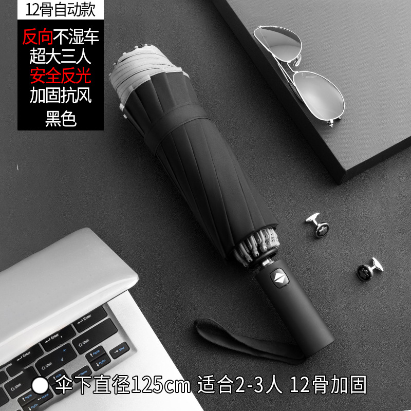 • 대형 3 인 리버스 12-뼈 자동-우산 반사 스트립-블랙