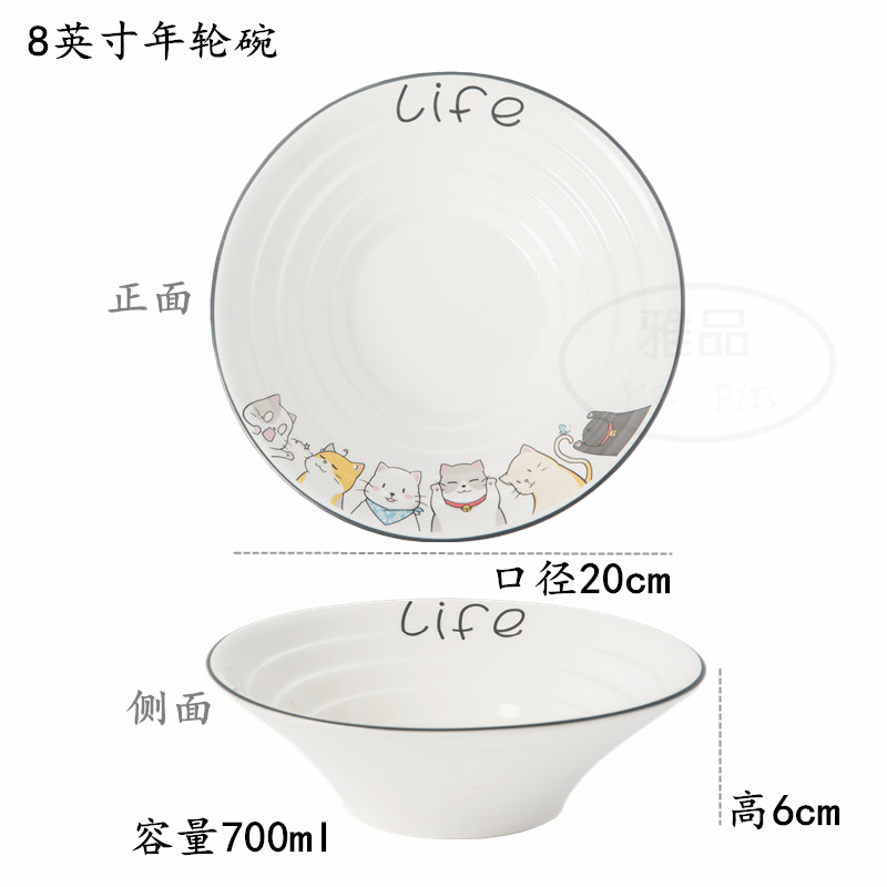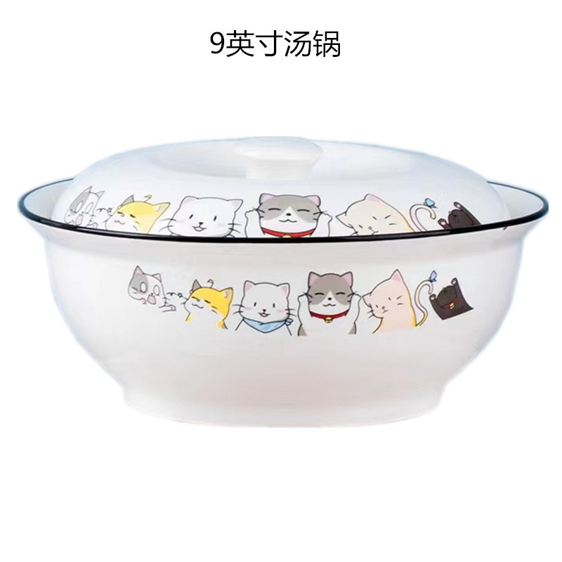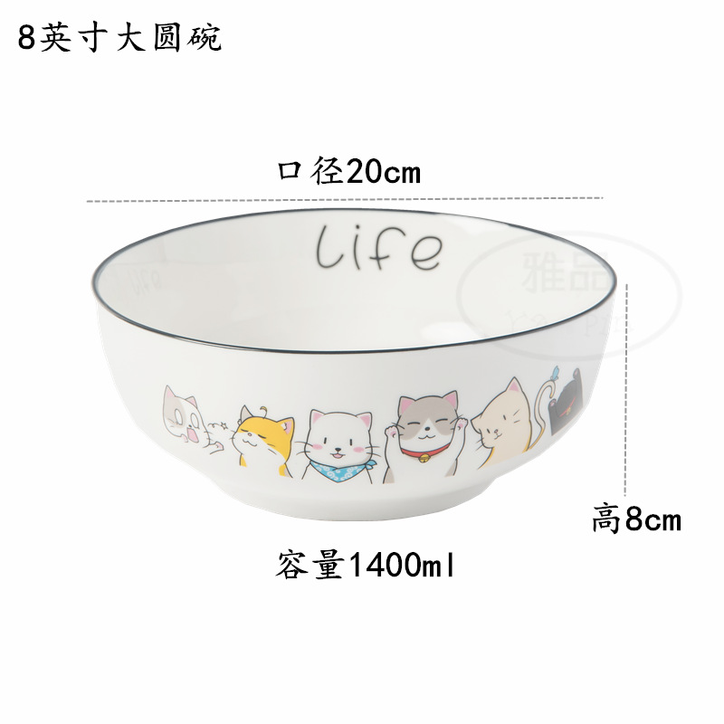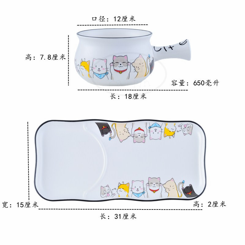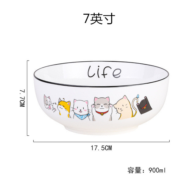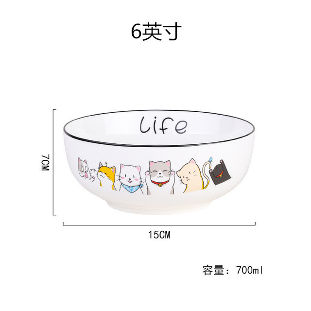 귀여운 고양이 식기 북유럽 세라믹 그릇 가정용 세라믹 그릇 일본식 만화 식기 세트 귀여운 밥 그릇 큰 수프 그릇