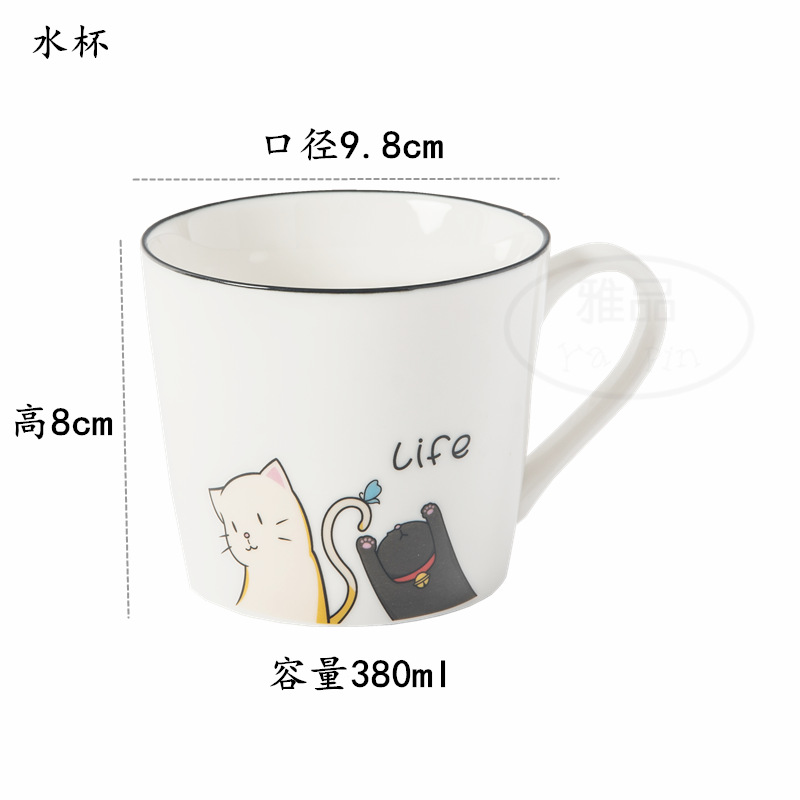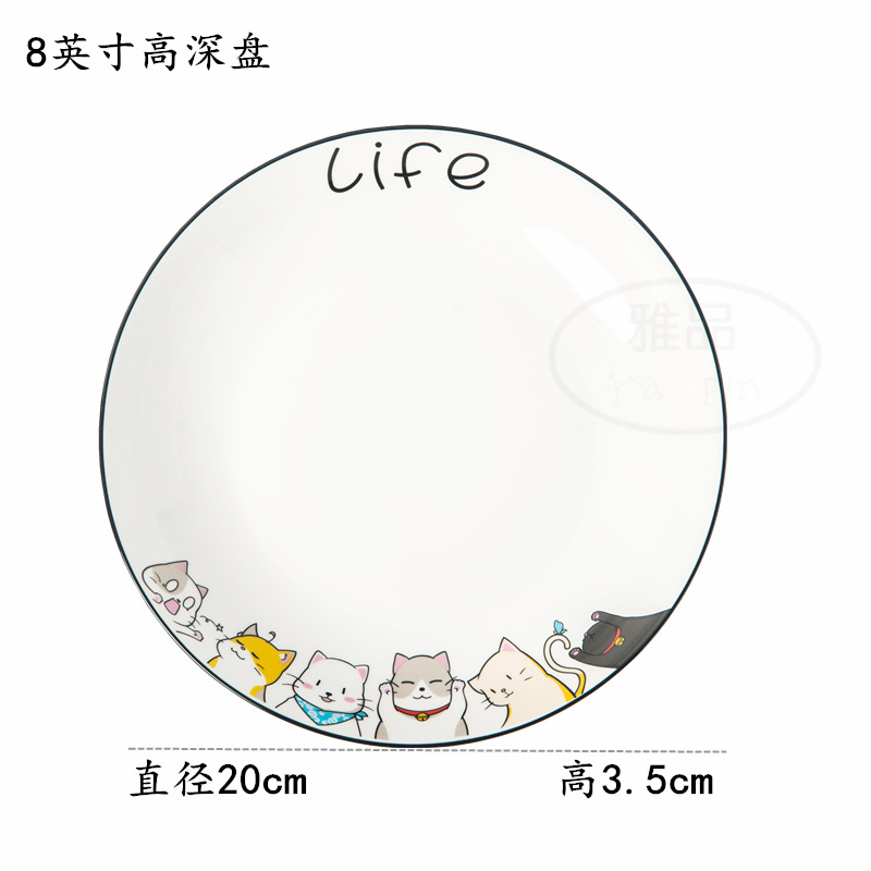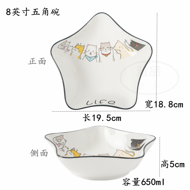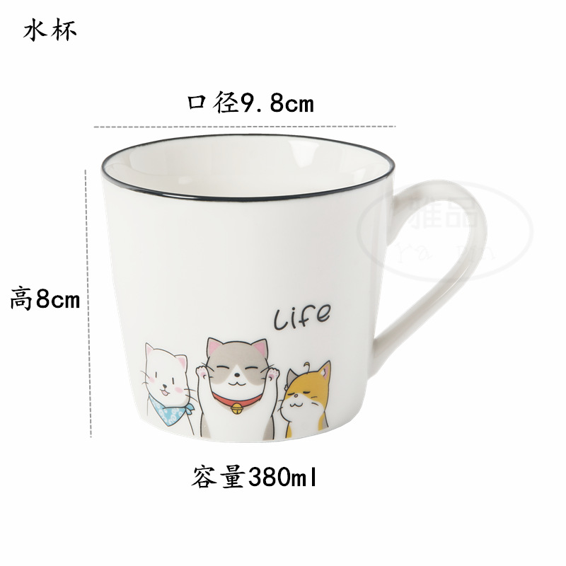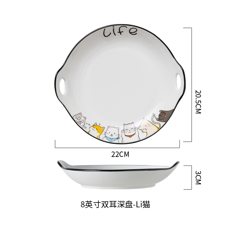 귀여운 고양이 식기 북유럽 세라믹 그릇 가정용 세라믹 그릇 일본식 만화 식기 세트 귀여운 밥 그릇 큰 수프 그릇