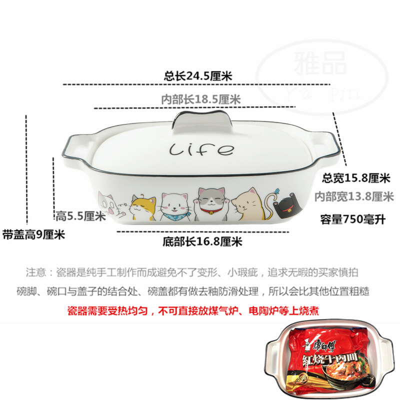 • 손잡이 리 고양이와 사각 베이킹 접시