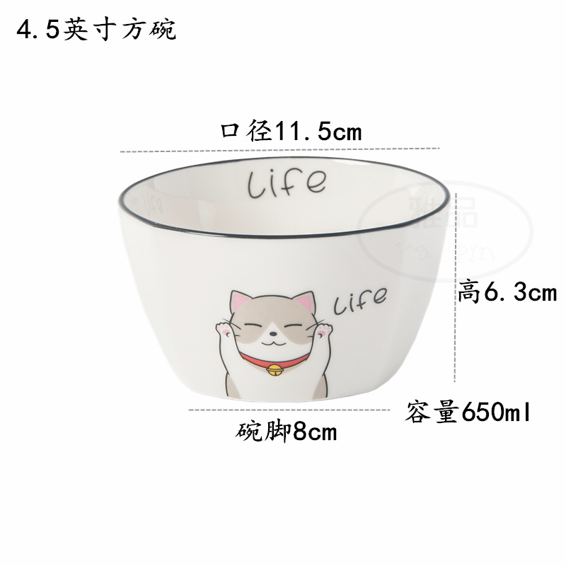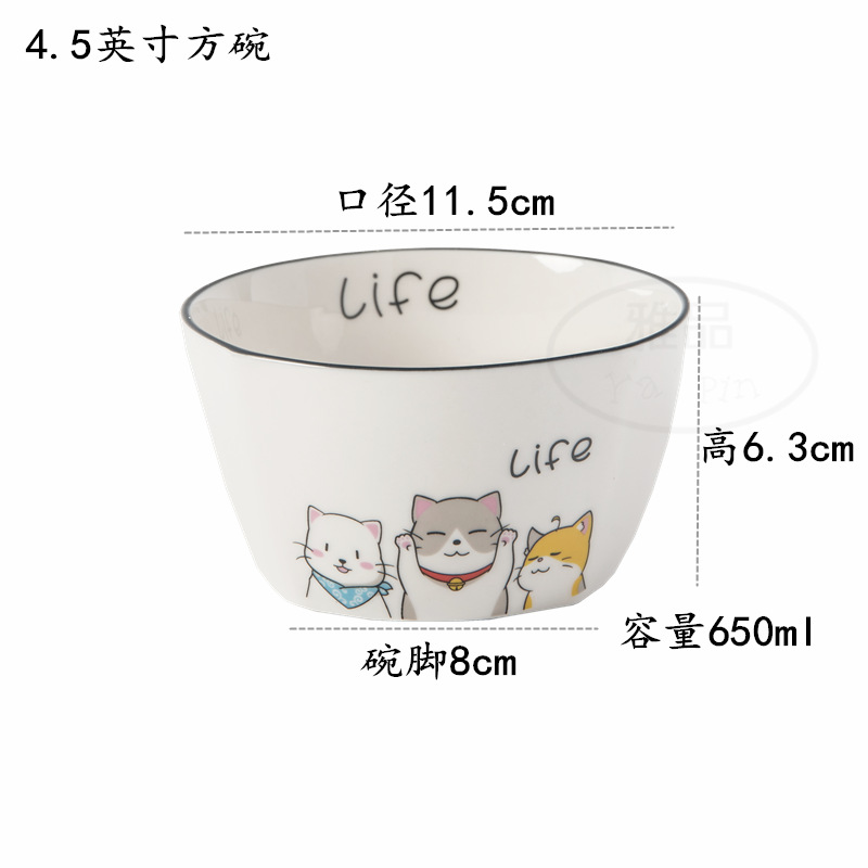 • 4.5 인치 사각 그릇 리 고양이 3 고양이