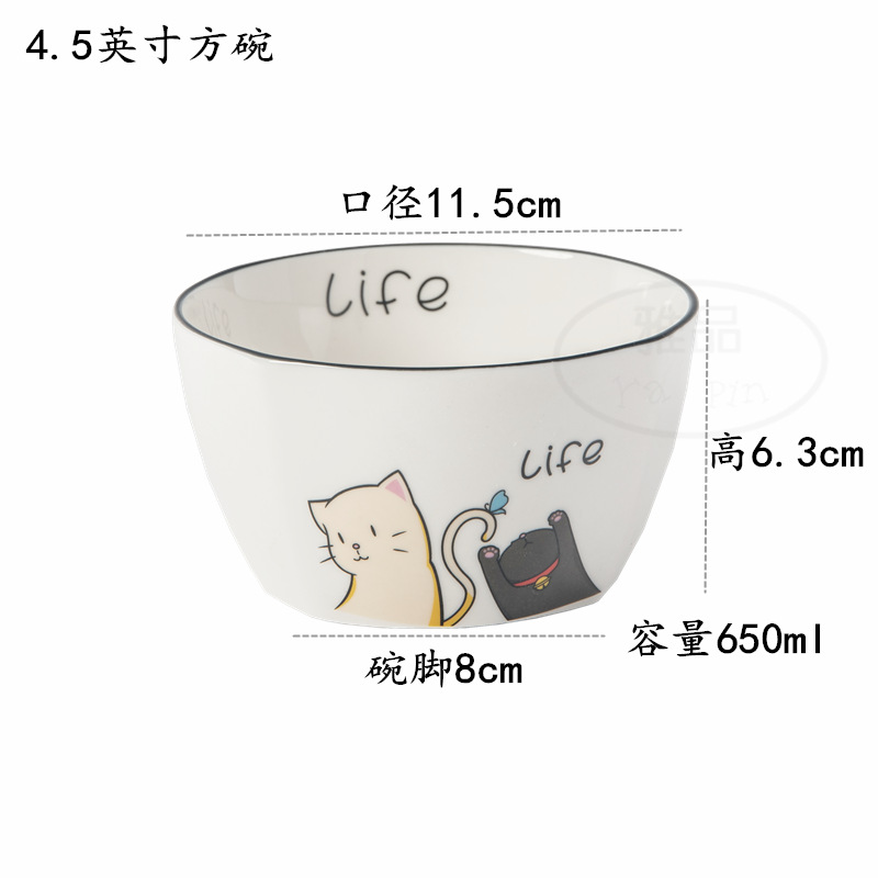 귀여운 고양이 식기 북유럽 세라믹 그릇 가정용 세라믹 그릇 일본식 만화 식기 세트 귀여운 밥 그릇 큰 수프 그릇스토어 가기