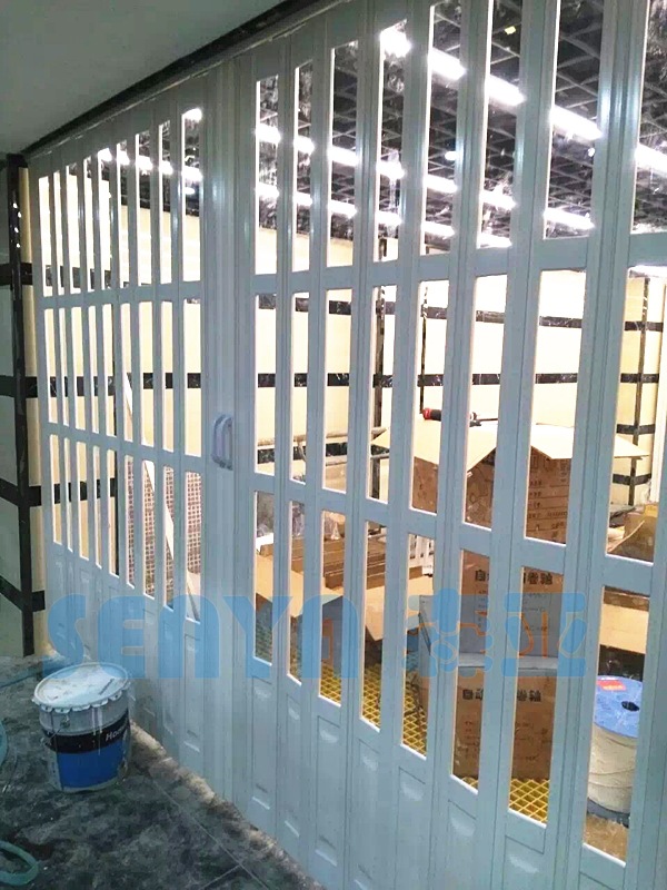 쇼핑몰 크리스탈 접이식 문 매달려 레일 펀치 무료 낮은 레일 자동차 가드 인터벌 셔터 도어 뷰티 샵 세차장스토어 가기