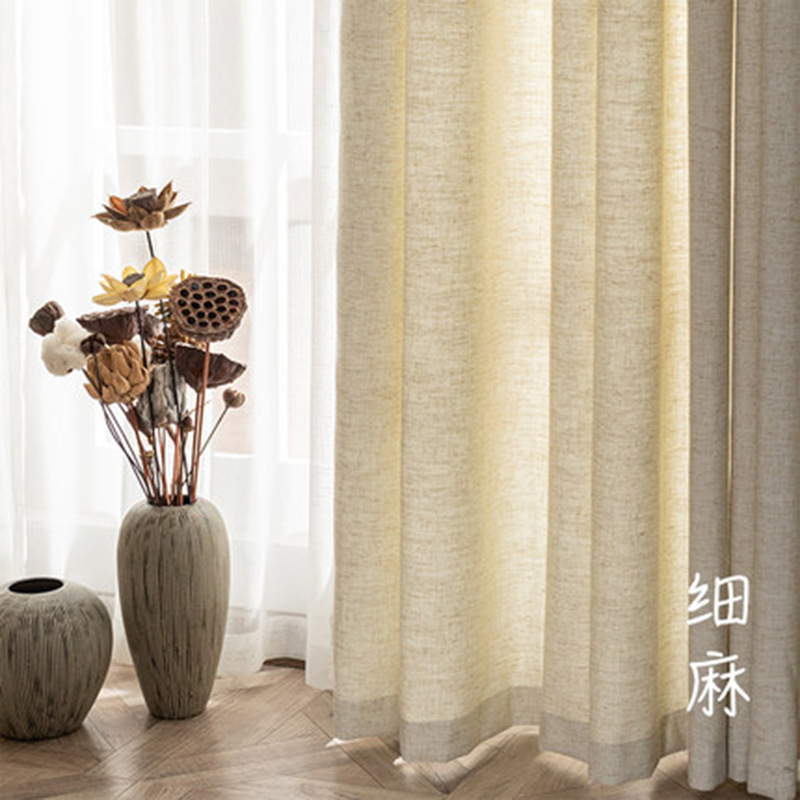 간단한 일본식 고급 린넨 중국식 단색 일반 면 린넨 창 화면 거실 반 음영 커튼 패브릭