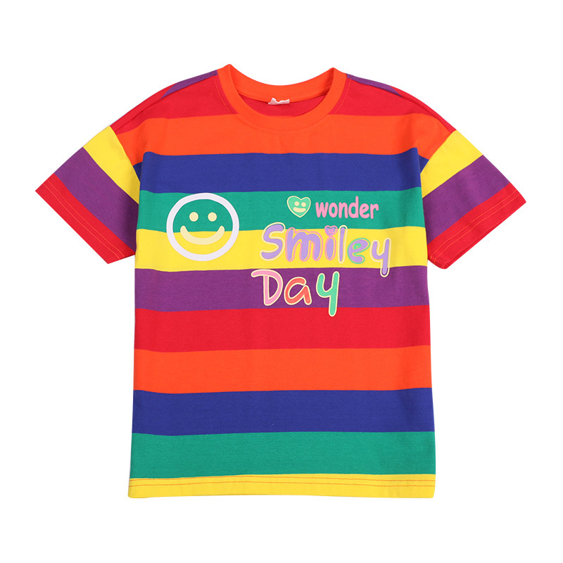 여아 반팔 티셔츠 퓨어 코튼 탑 여아 웨스턴 스타일 올매치 반팔 베이비 스트라이프 티셔츠 아동 여름복스토어 가기