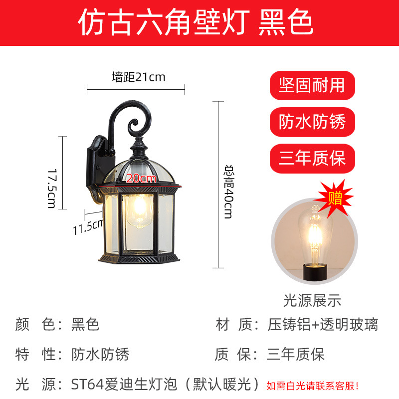 발코니 램프 야외 안뜰 빌라 게이트 벽 기둥 복도 외부 벽 테라스 복고풍 야외 방수 벽 램프