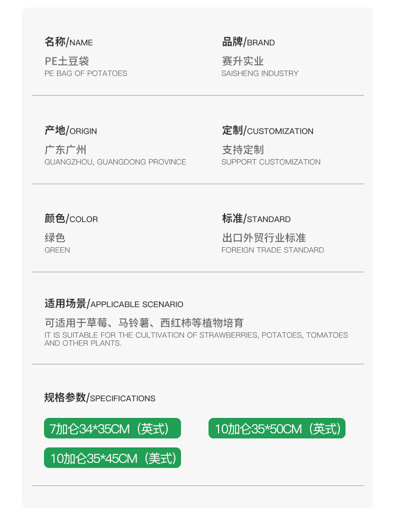소스 제조 업체 PE 감자 심기 가방 크로스 국경 감자 재배 가방 식물 성장 가방 야채 심기 가방 도매스토어 가기