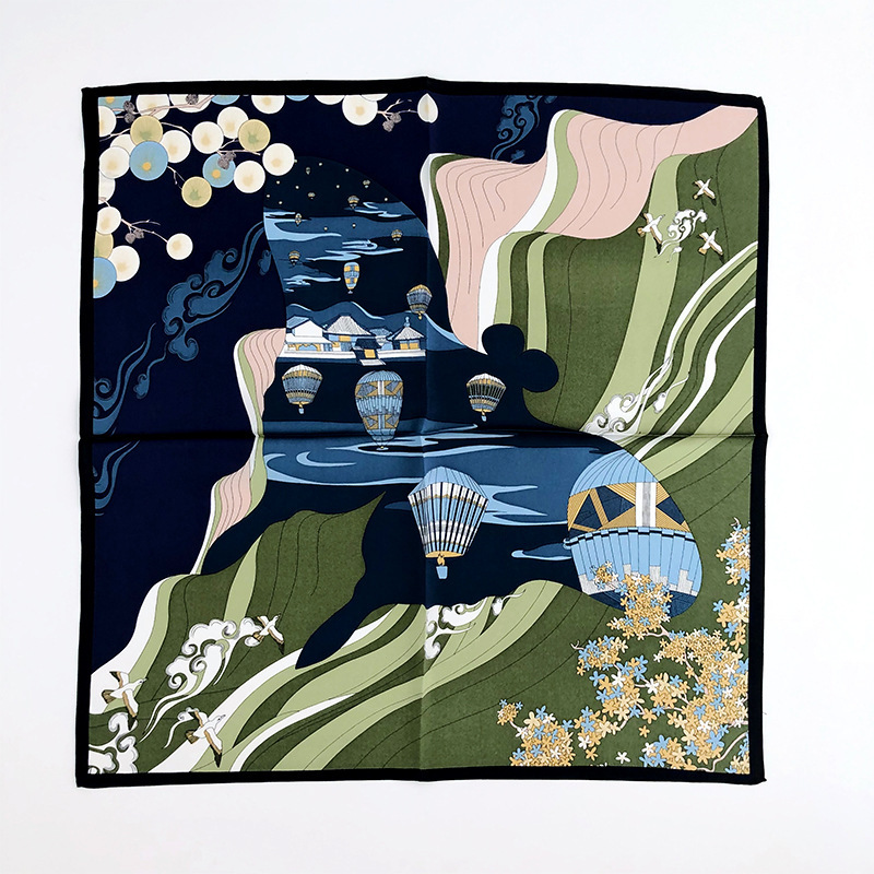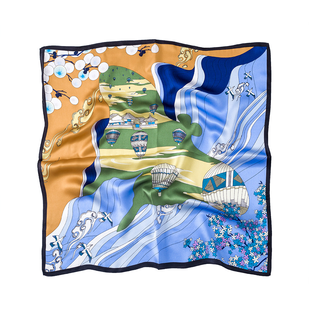 실크 작은 사각형 스카프 여성의 높은 고도 로맨틱 열기구 장식 전문 작은 스카프 봄과 가을 장식 실크 스카프 얇은 스카프