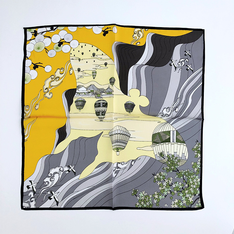 실크 작은 사각형 스카프 여성의 높은 고도 로맨틱 열기구 장식 전문 작은 스카프 봄과 가을 장식 실크 스카프 얇은 스카프스토어 가기
