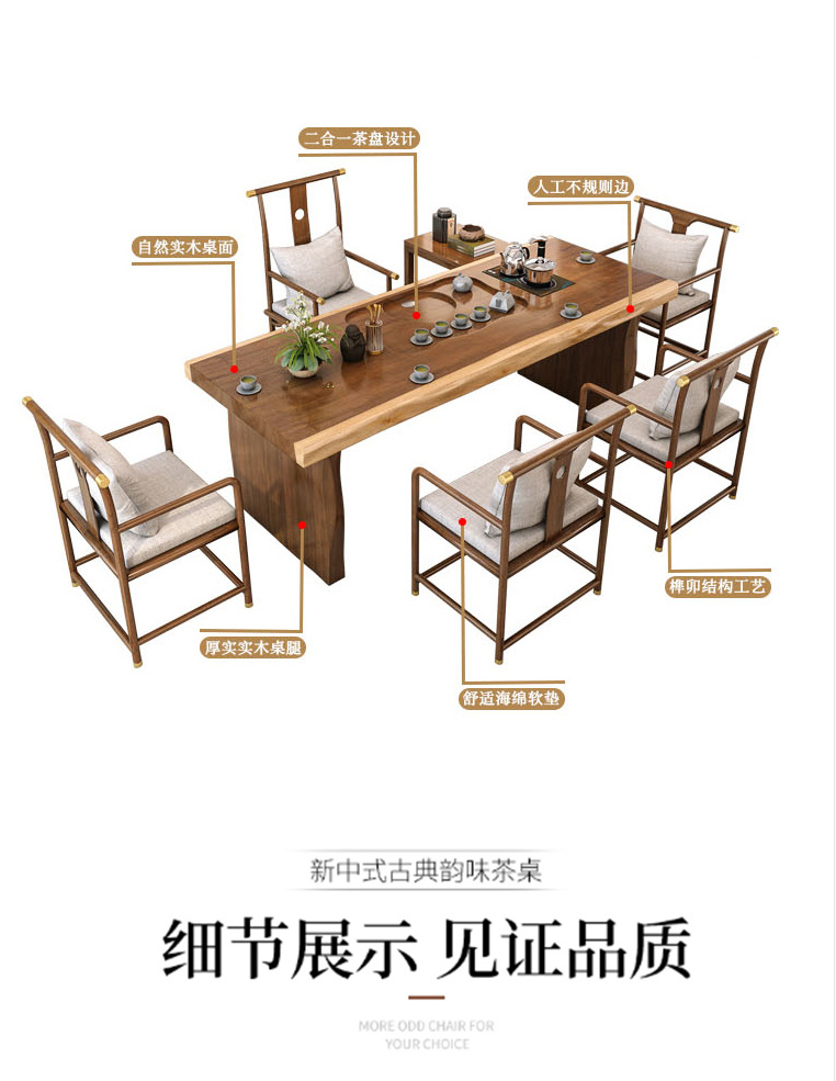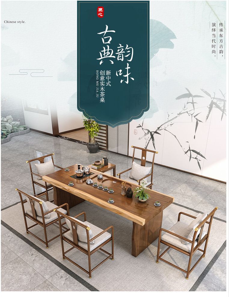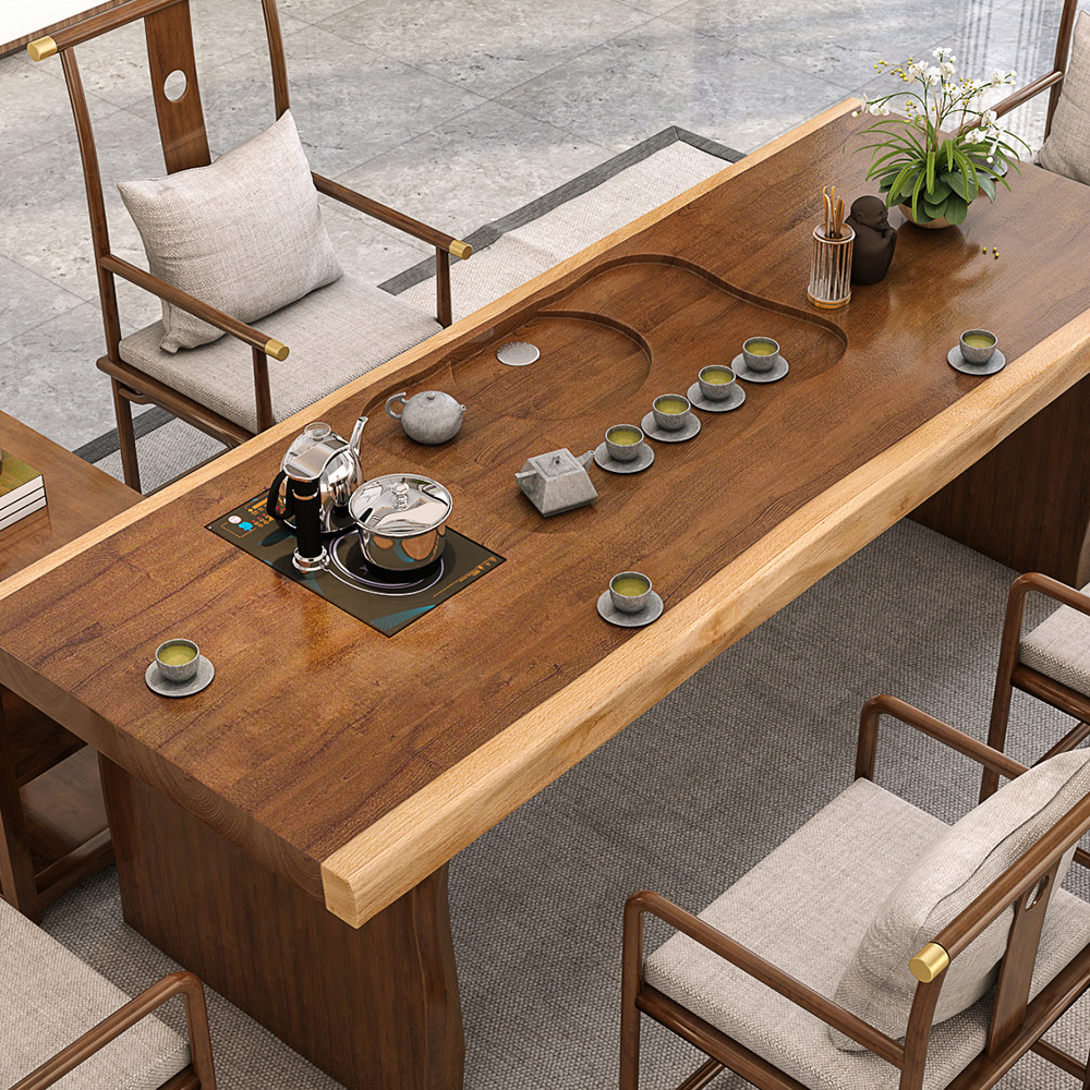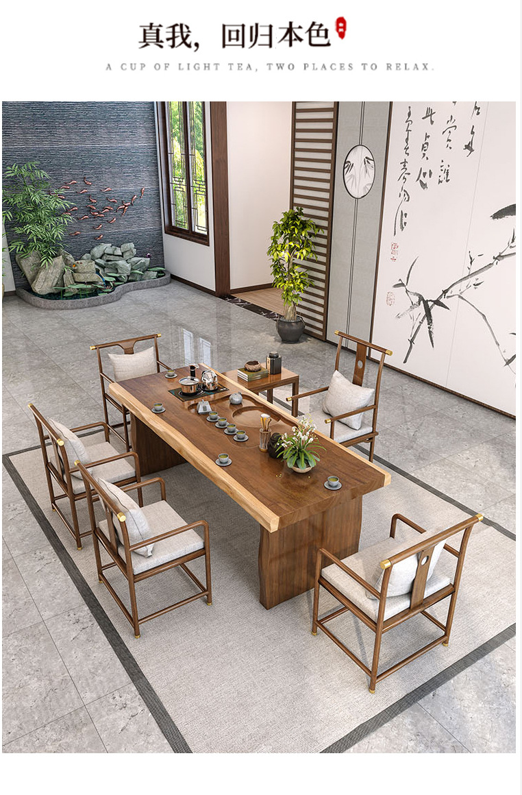 새로운 중국 스타일 단단한 나무 대형 접시 티 테이블 사무실 선 회의 쿵푸 티 테이블 홈 레저 티 테이블과 의자 세트스토어 가기