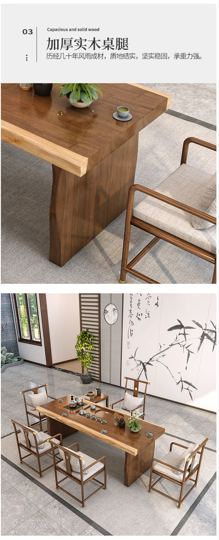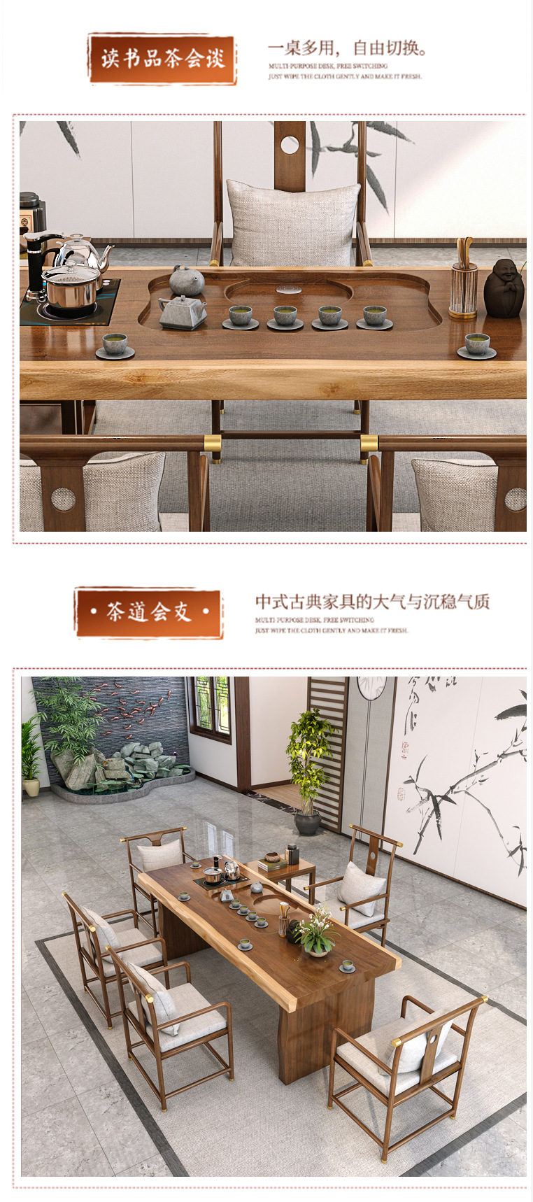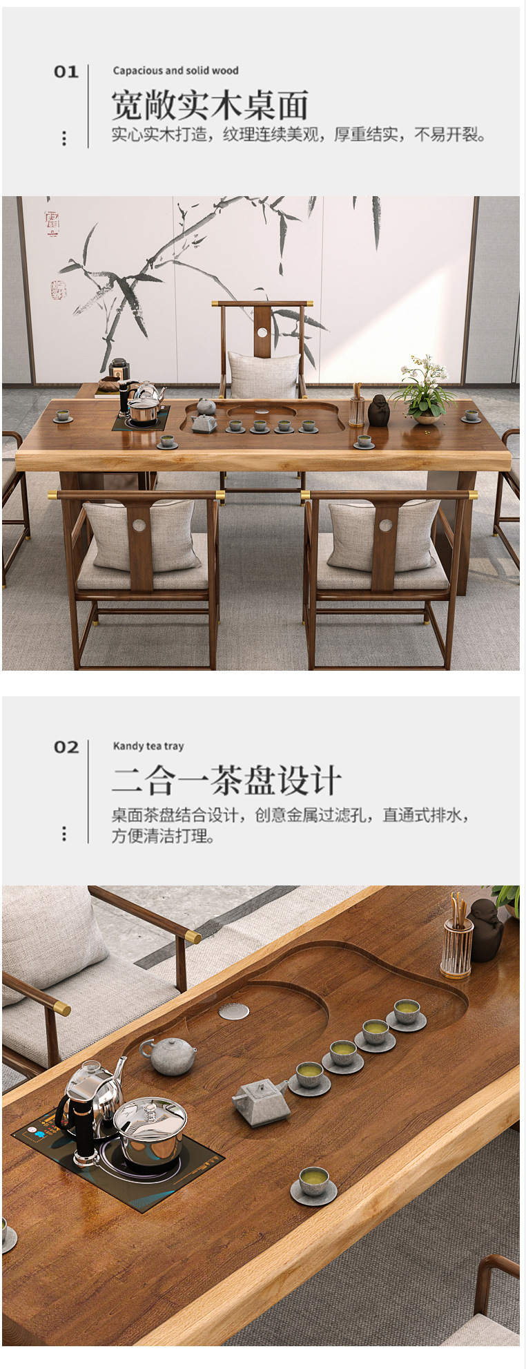 새로운 중국 스타일 단단한 나무 대형 접시 티 테이블 사무실 선 회의 쿵푸 티 테이블 홈 레저 티 테이블과 의자 세트스토어 가기