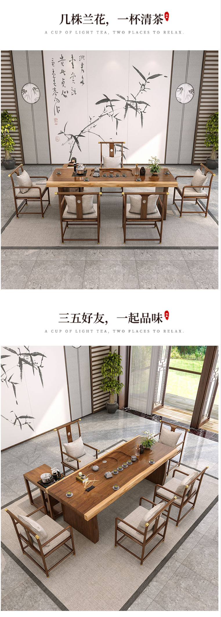 새로운 중국 스타일 단단한 나무 대형 접시 티 테이블 사무실 선 회의 쿵푸 티 테이블 홈 레저 티 테이블과 의자 세트