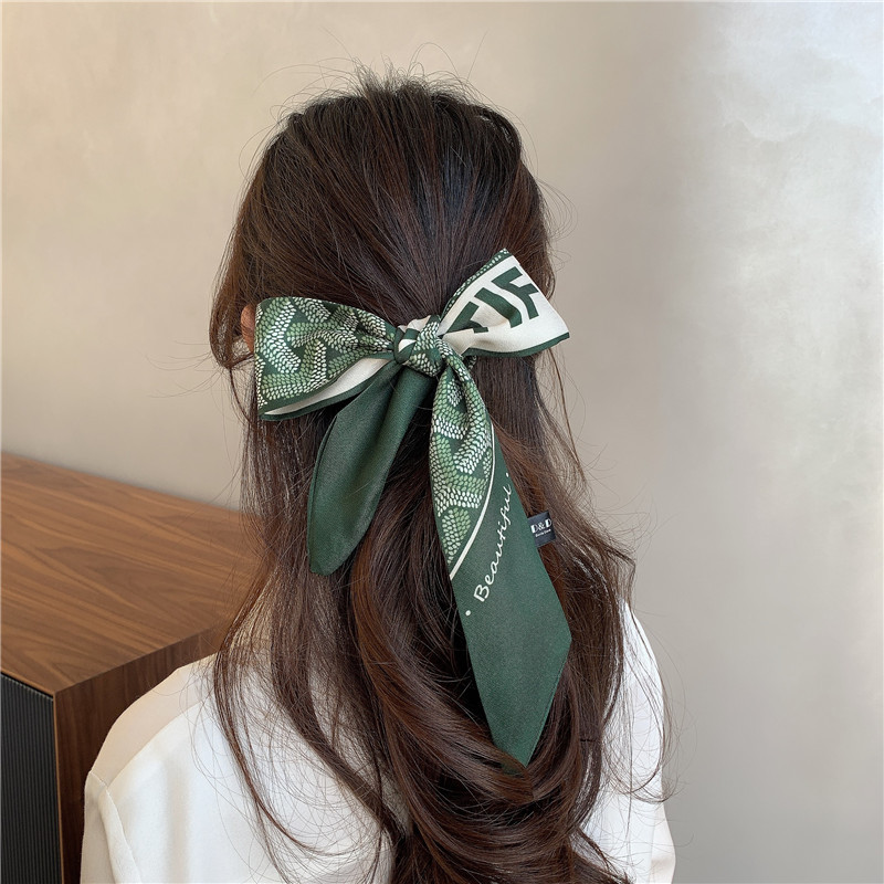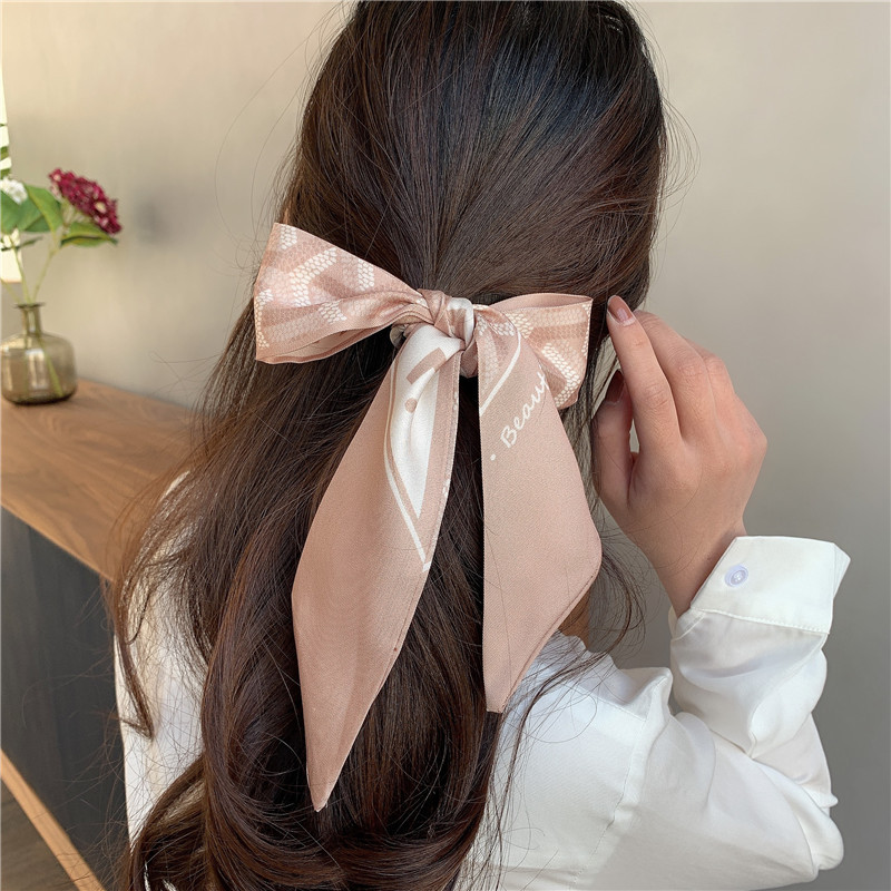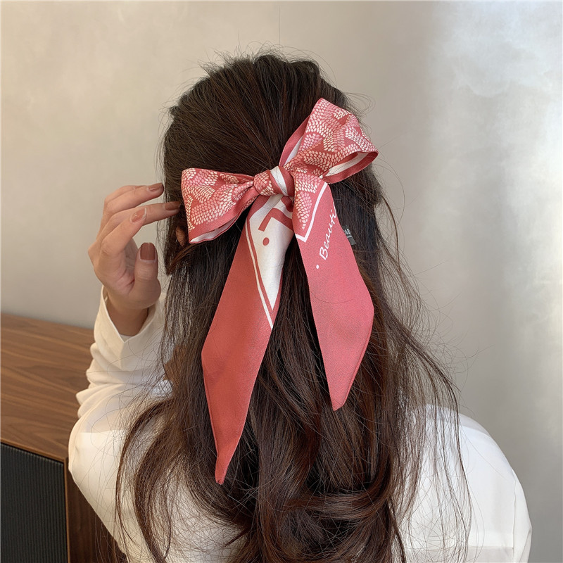 실크 스카프 프랑스 스타일 헤어 밴드 봄과 가을 얇은 빈티지 실크 스카프 여성의 귀여운 작은 긴 리본 장식 스카프 머리 스카프 리본