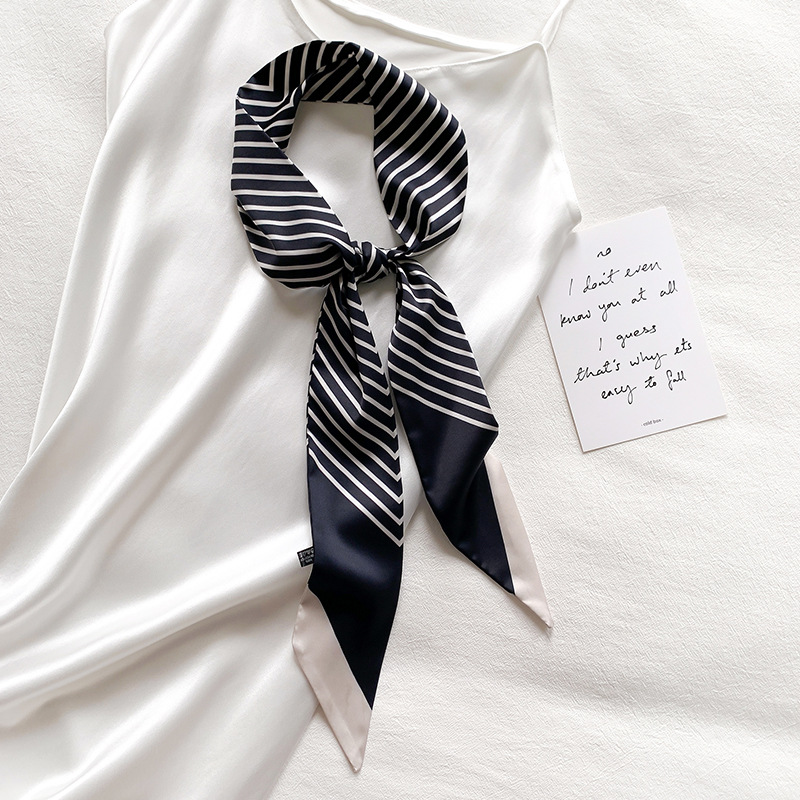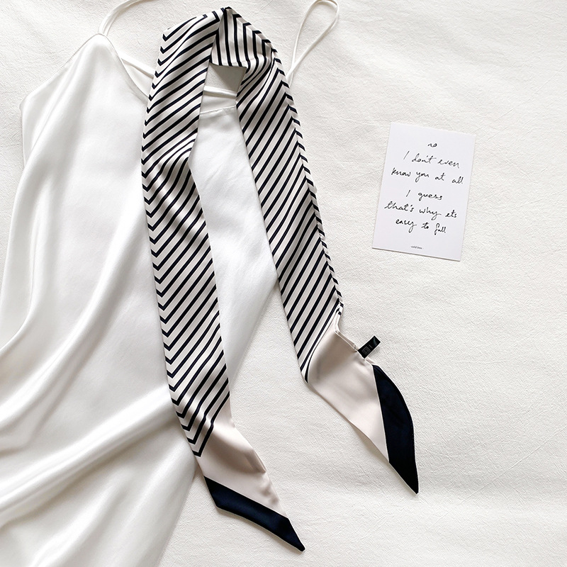 한국 봄과 가을 새로운 얇은 좁은 긴 작은 스카프 여자의 여름 머리 줄무늬 유행 작은 스카프 넥타이 스카프 리본스토어 가기