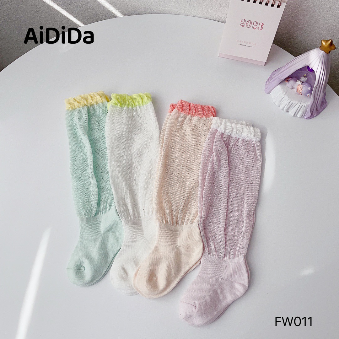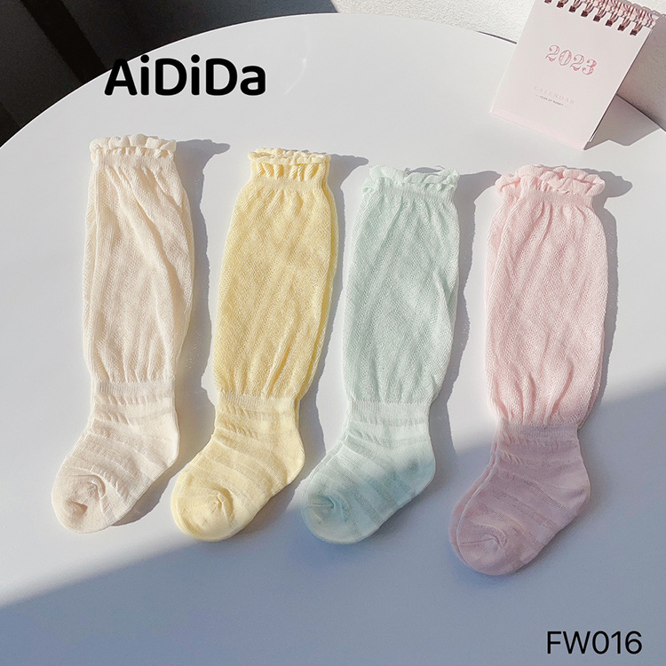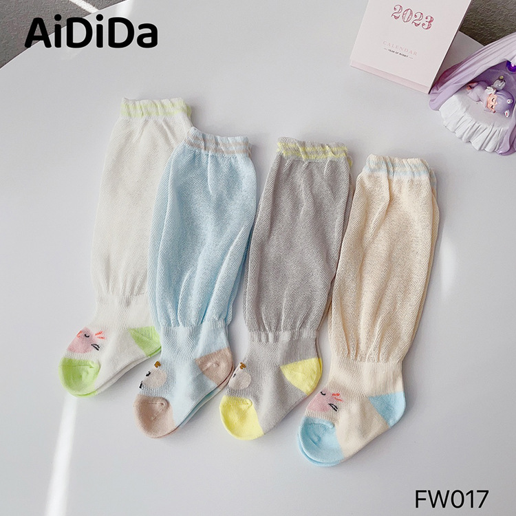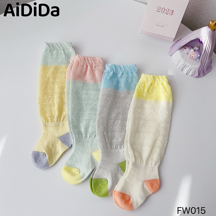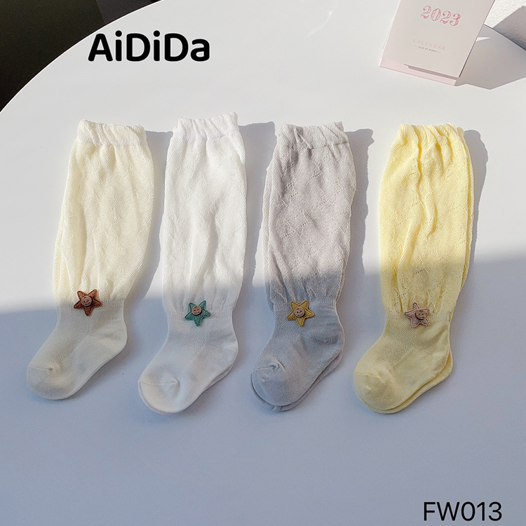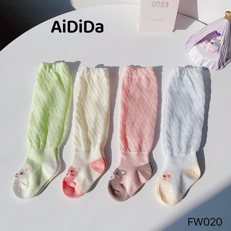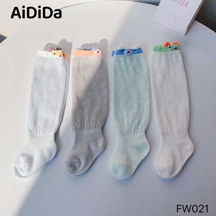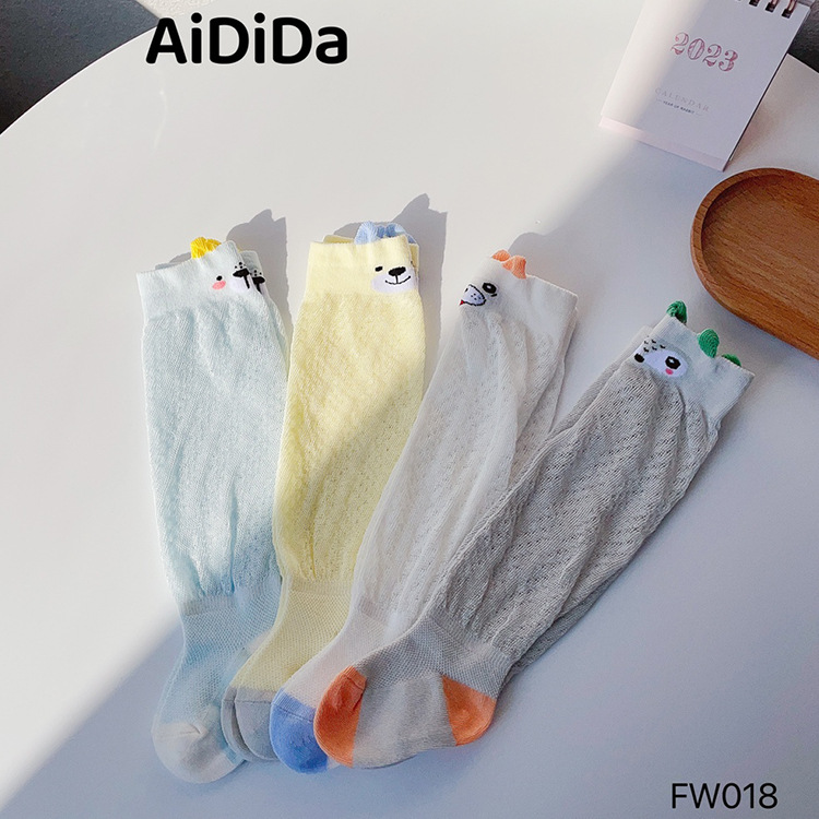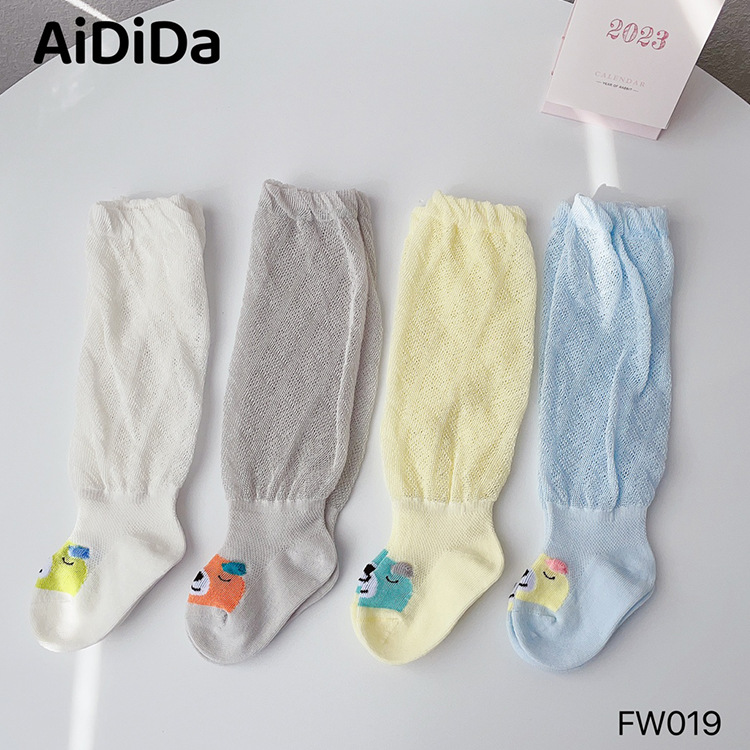여름 신상 메쉬 얇은 면 모기 방지 무봉제 아기 양말 귀여운 만화 캐릭터 아기 무릎 위 긴 양말 어린이용