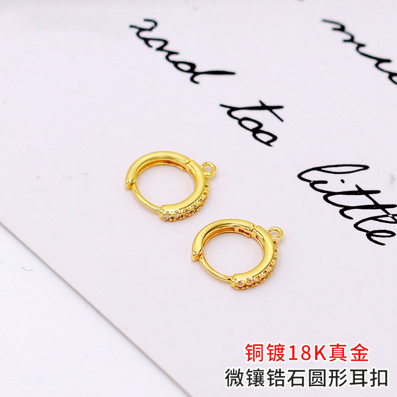 상감 지르콘 라운드 이어 버클 18K 리얼 골드 백 골드 컬러 유지 귀걸이 여성 DIY 보석 액세서리 제조 업체 도매스토어 가기