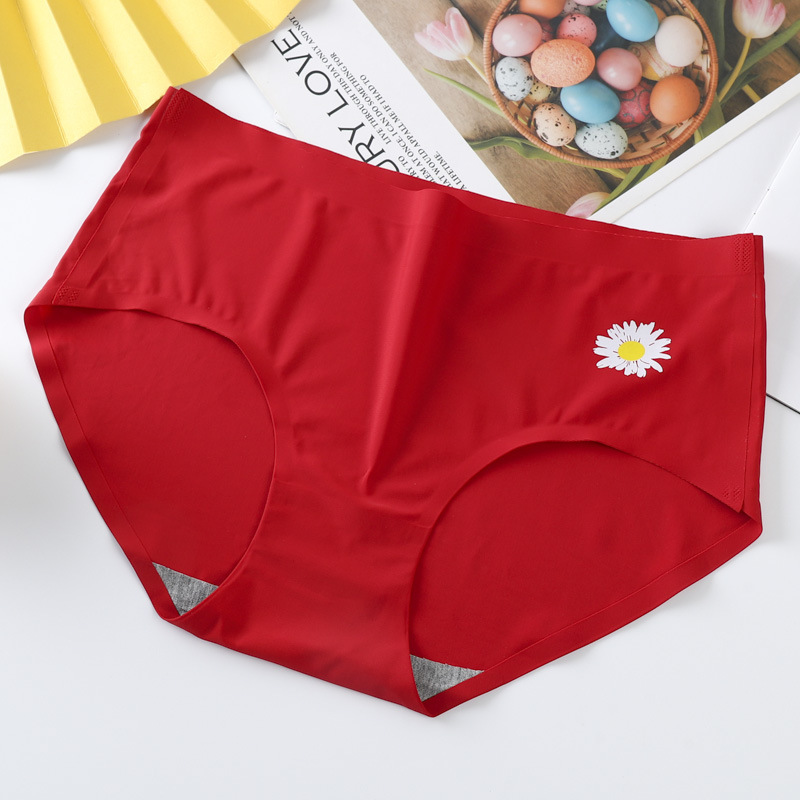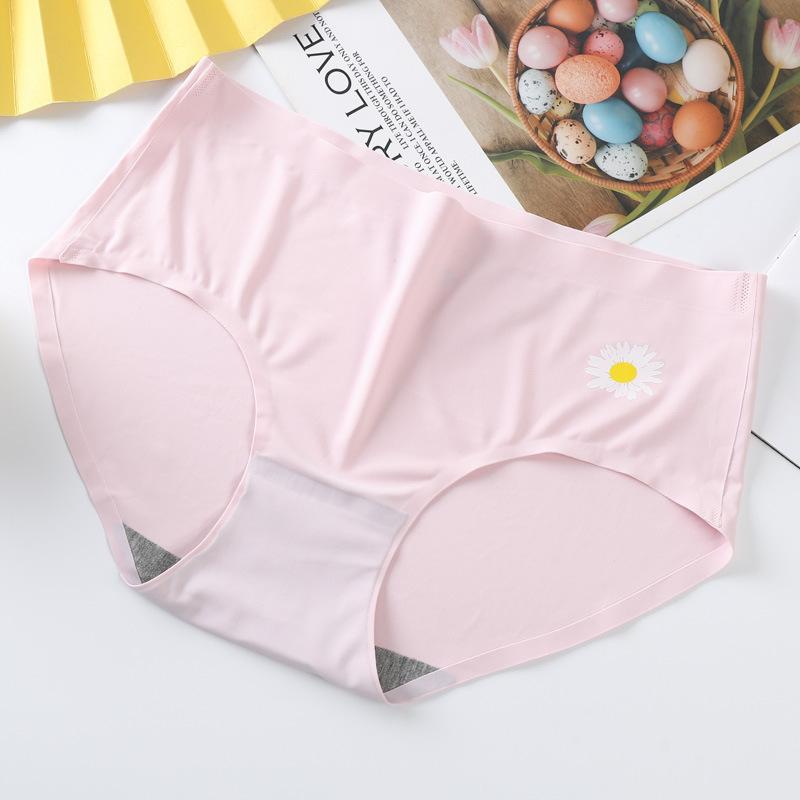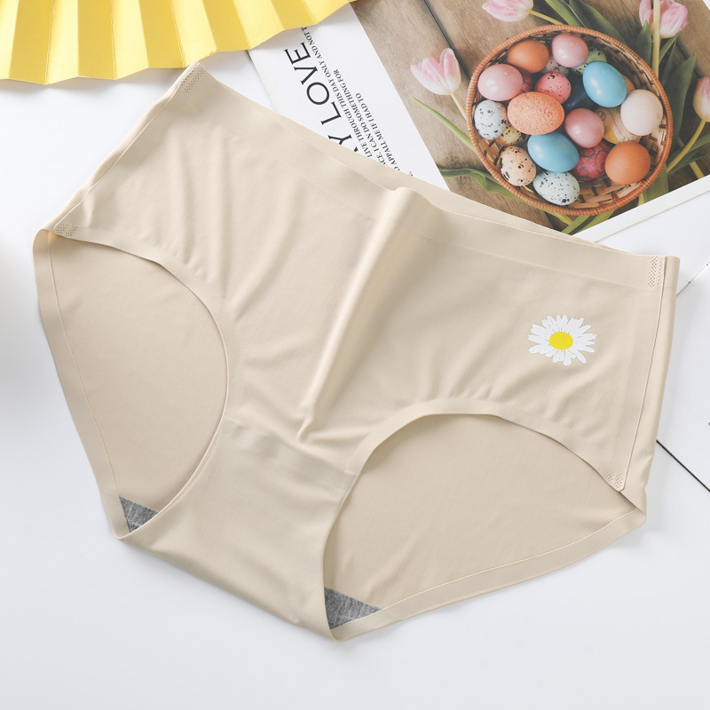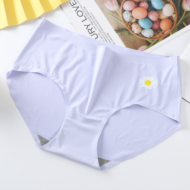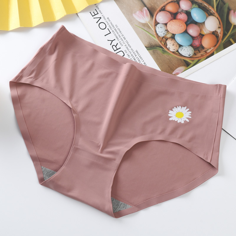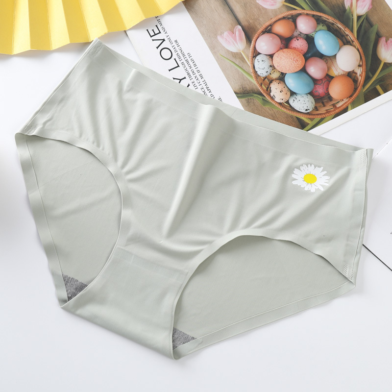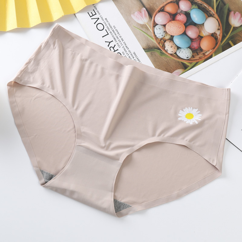 일본의 새로운 스타일 작은 주름 국화 아이스 실크 비 마킹 속옷 여성용 순면 원피스 속옷 통기성 중간 허리 팬티스토어 가기