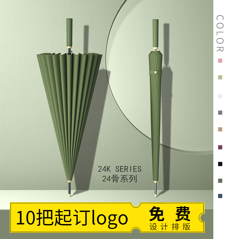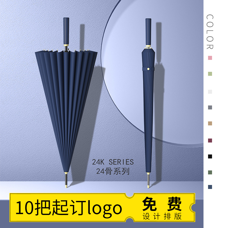 24 뼈 우산 도매 맞춤형 로고 긴 손잡이 스트레이트 로드 대형 우산 대형 바람 방지 3 인 광고 우산 선스크린 우산스토어 가기