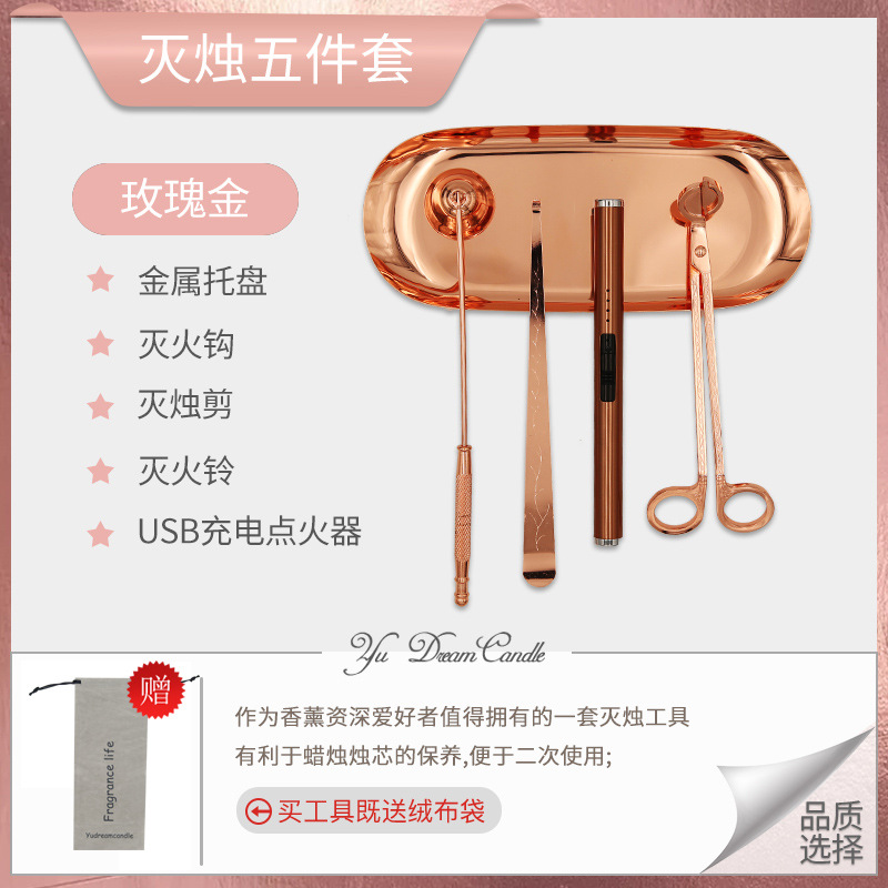 • ☆★로즈 골드 5종 세트 (접시 + 가위 + 덮개 + 고리 + 전기 점화기) + 융 파우치 증정☆★