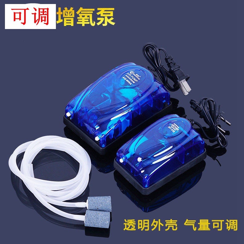 本品为增氧机分两种规格,小号增氧机单个出氧孔,另配送一米管;大号配送两米管;四孔配送6米管,底部采用橡胶脚垫,振动小,双档设计,气量两级可调,且噪音低,适用各种水族箱增氧用途。