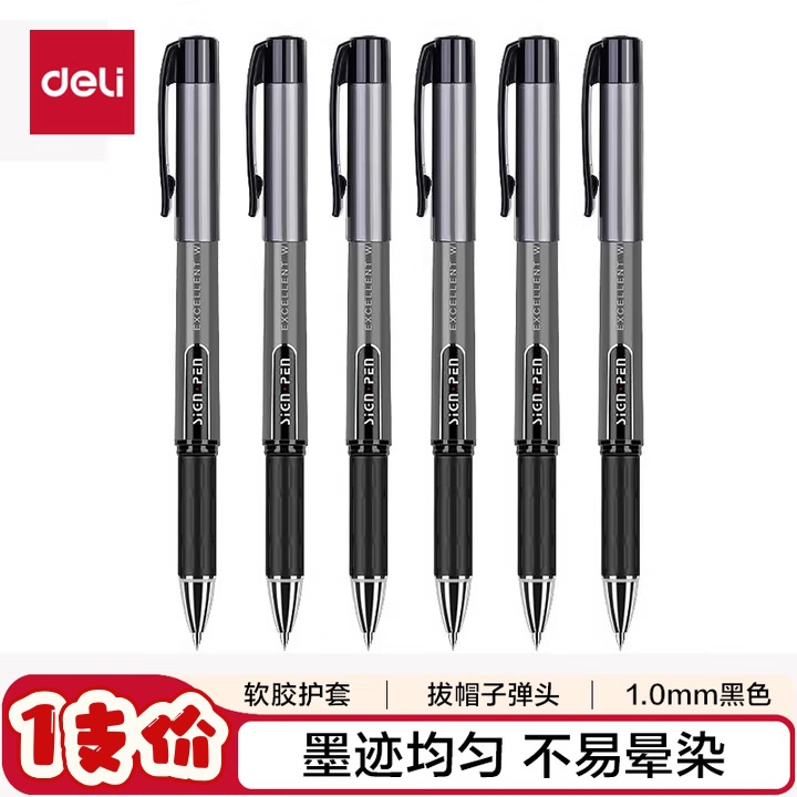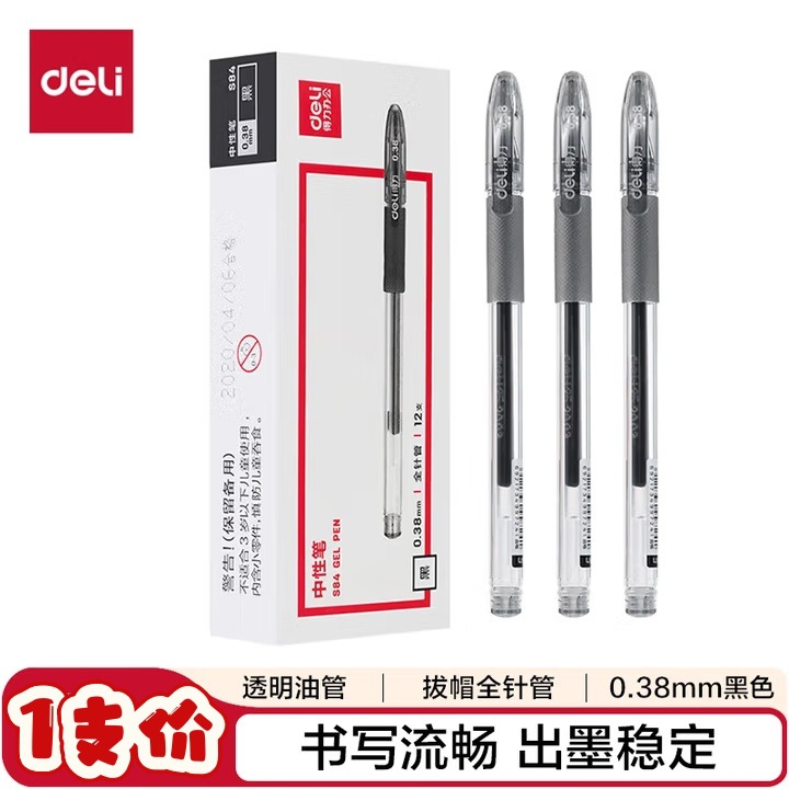 델리 젤 펜 0.5mm 검정펜 캡형 사무용 광고펜 학생용 빨간펜 서명펜 볼펜 수성펜스토어 가기