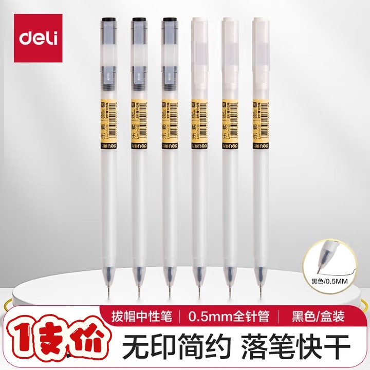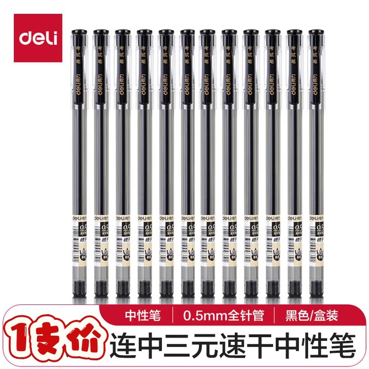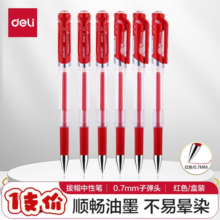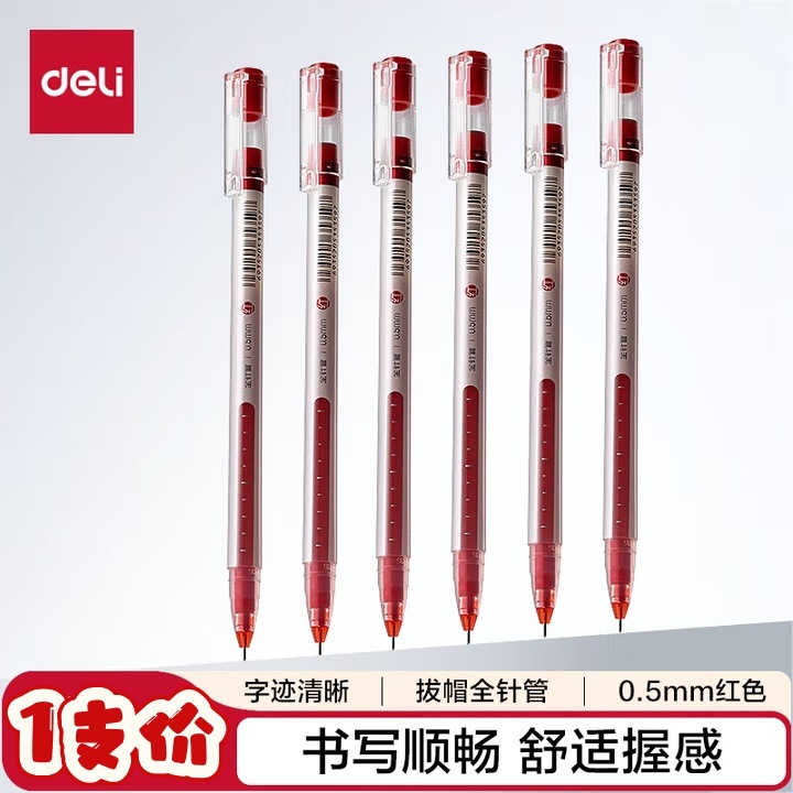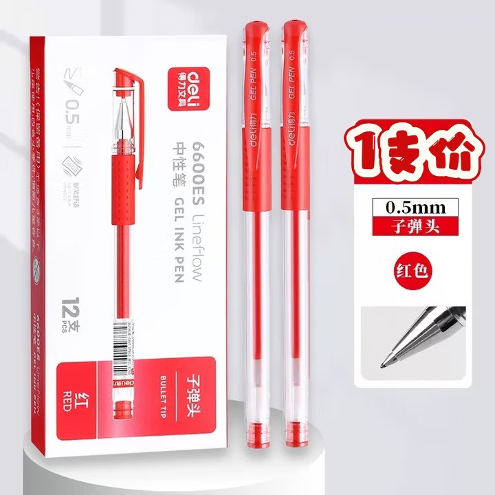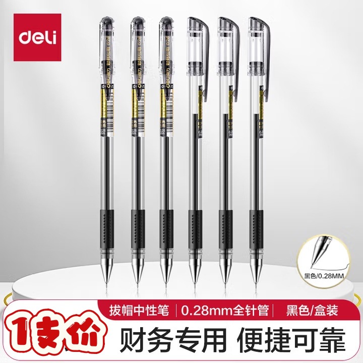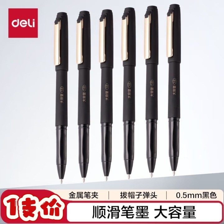 델리 젤 펜 0.5mm 검정펜 캡형 사무용 광고펜 학생용 빨간펜 서명펜 볼펜 수성펜