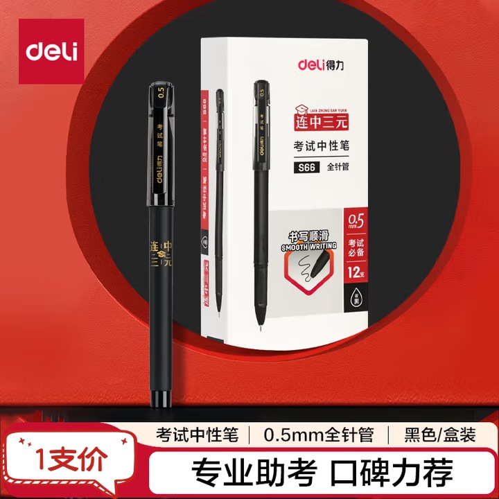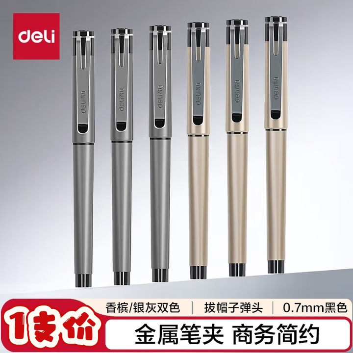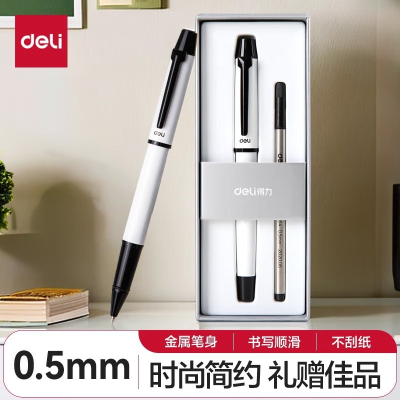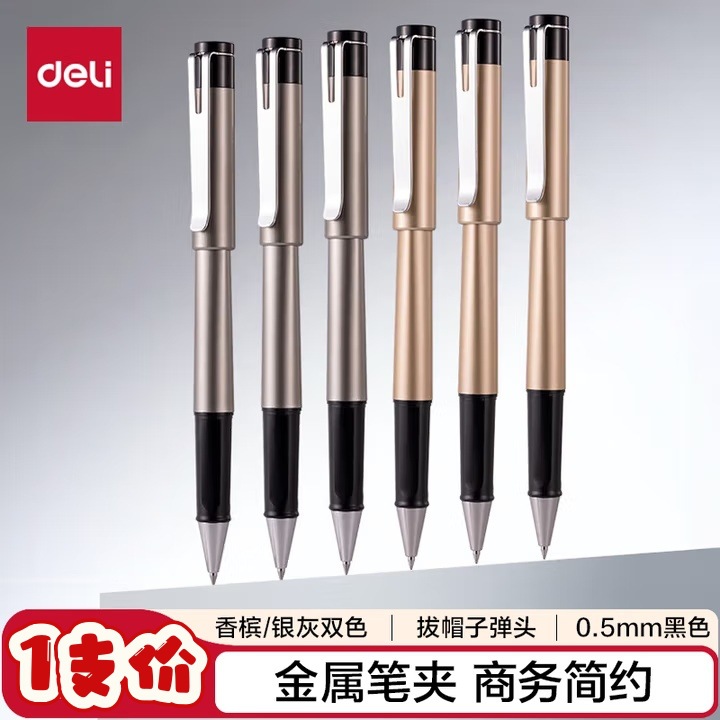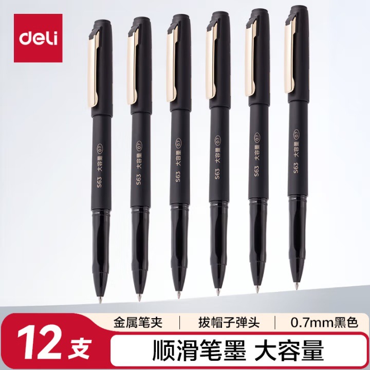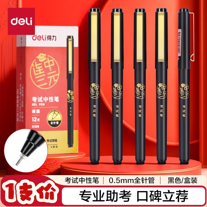델리 젤 펜 0.5mm 검정펜 캡형 사무용 광고펜 학생용 빨간펜 서명펜 볼펜 수성펜
