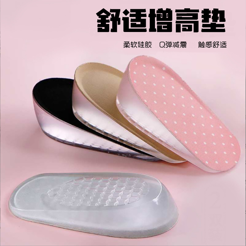 보이지 않는 내부 높이 증가 안창 양말 남성과 여성을위한 실리콘 힐 하프 패드를 착용 부드럽고 편안한 진동 높이 증가 유물스토어 가기